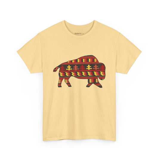 Unisex Heavy Cotton Tee, Seminole Patchwork Patterned Bison, Tribal Motif, Native Design, Indigenous Buffalo