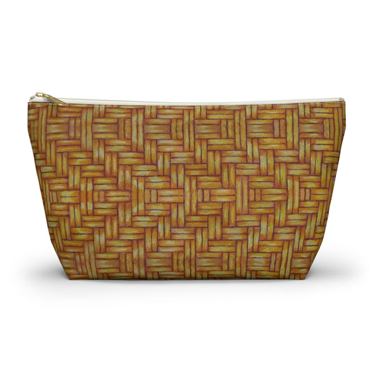 Accessory Pouch w T-bottom, Native American, Euchee basketweave design, pencil case, cosmetic travel bag, zipper bag, catch all