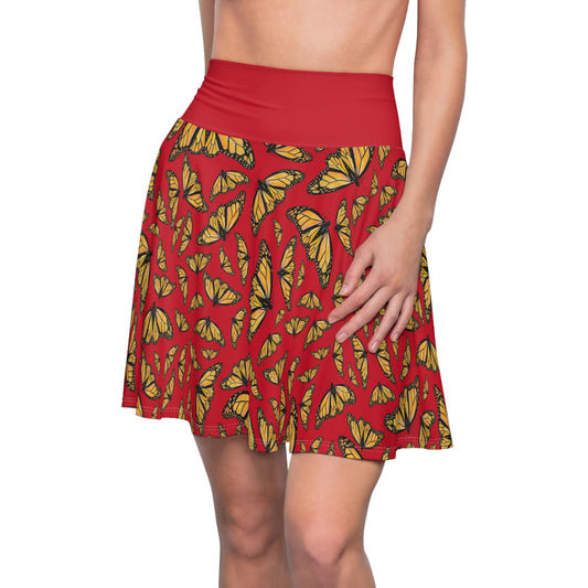 Women's Skater Skirt, Monarch, Red Background, Butterfly, Kamama