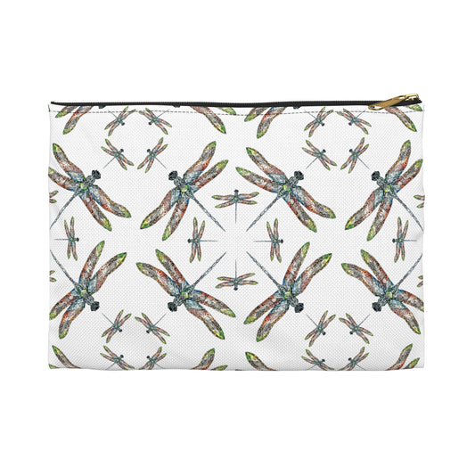 Accessory Pouch, Dragonfly, White, Native American design, Makeup bag, Pencil case, Travel cosmetic pouch