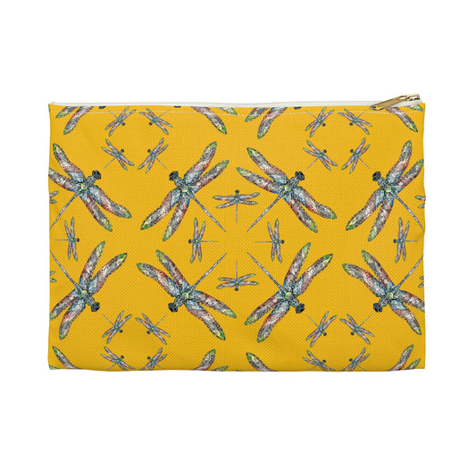 Accessory Pouch, Dragonfly, Yellow, Native American design, Makeup bag, Pencil case, Travel cosmetic pouch