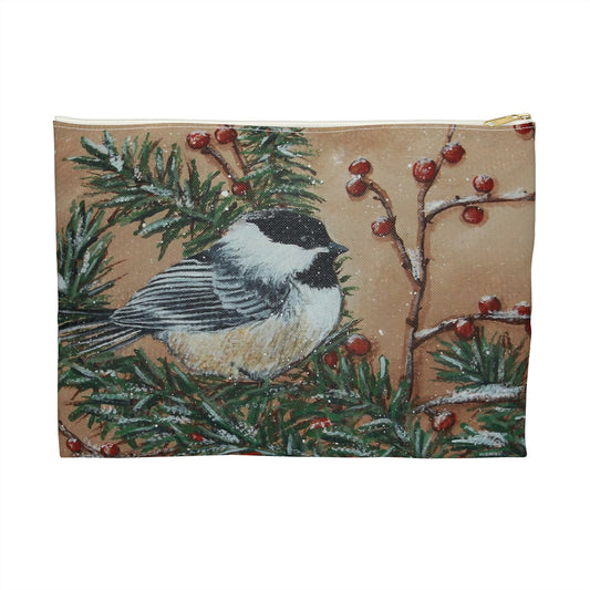 Accessory Pouch, Chickadee, Winter Berries, Wild Bird, Song Bird