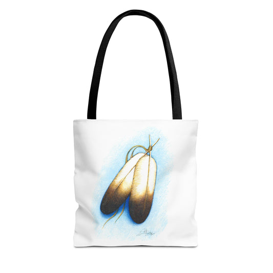 Double Feather Tote Bag, Native American design, book bag, powwow tote bag