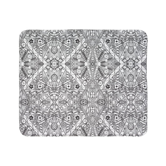 Fleece Sherpa Blanket, Black and White Tribal Motif, SouthEast Native American Mound Symbols, Indigenous art