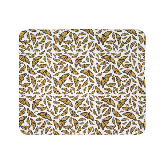 Fleece Sherpa Blanket, Monarchs, White background, Butterflies