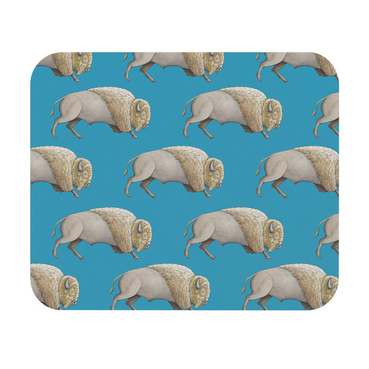 Mouse Pad, Turquoise Background, White Bison, Buffalo, Native American, Indigenous Design, Oklahoma