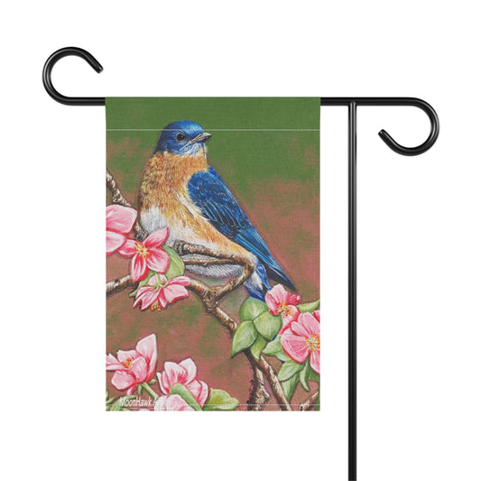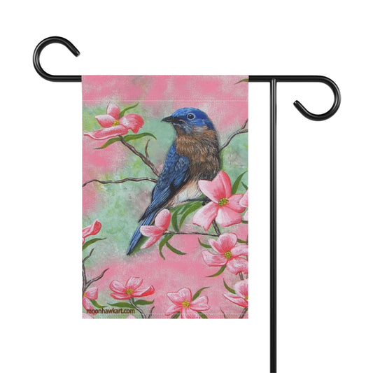 Garden & House Banner with Eastern Bluebird on Pink Dogwood