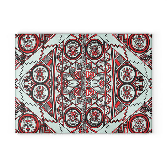 Glass Cutting Board, Kitchen Accessory, SouthEast Spider Motif, Grandmother Spider, Native Design, Ancient Tribal Mound Symbols