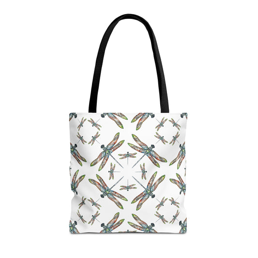 Dragonfly Tote Bag, White, Shoulder bag, Powwow tote, Carry all