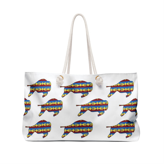 Weekender Bag, White, Seminole Design, Bison, Native American, PowWow
