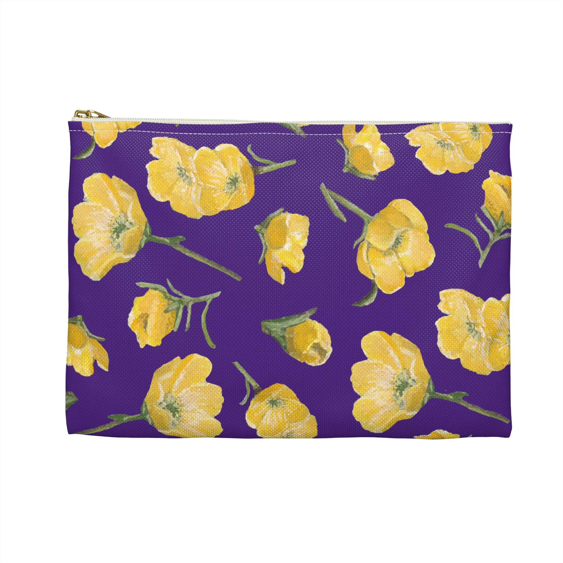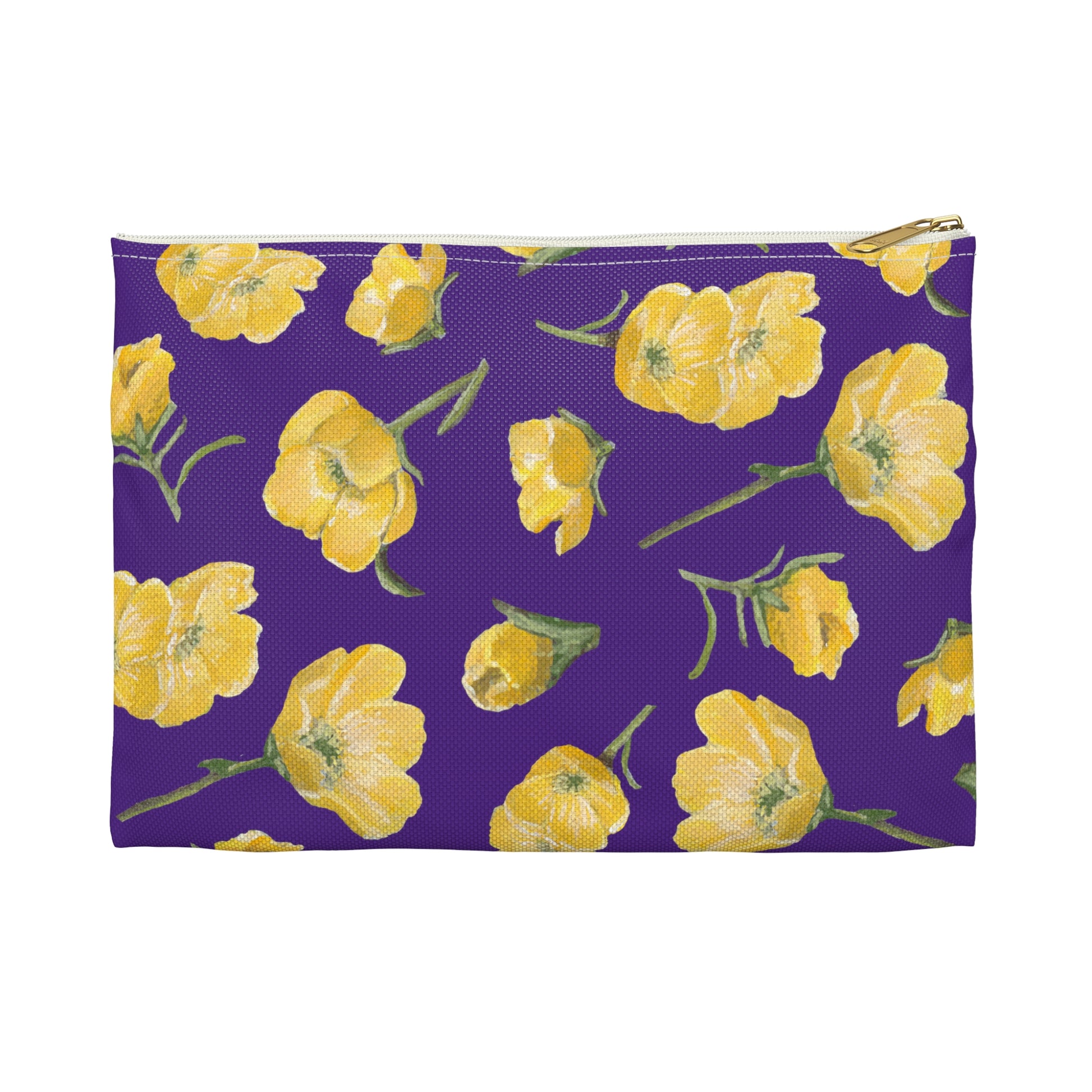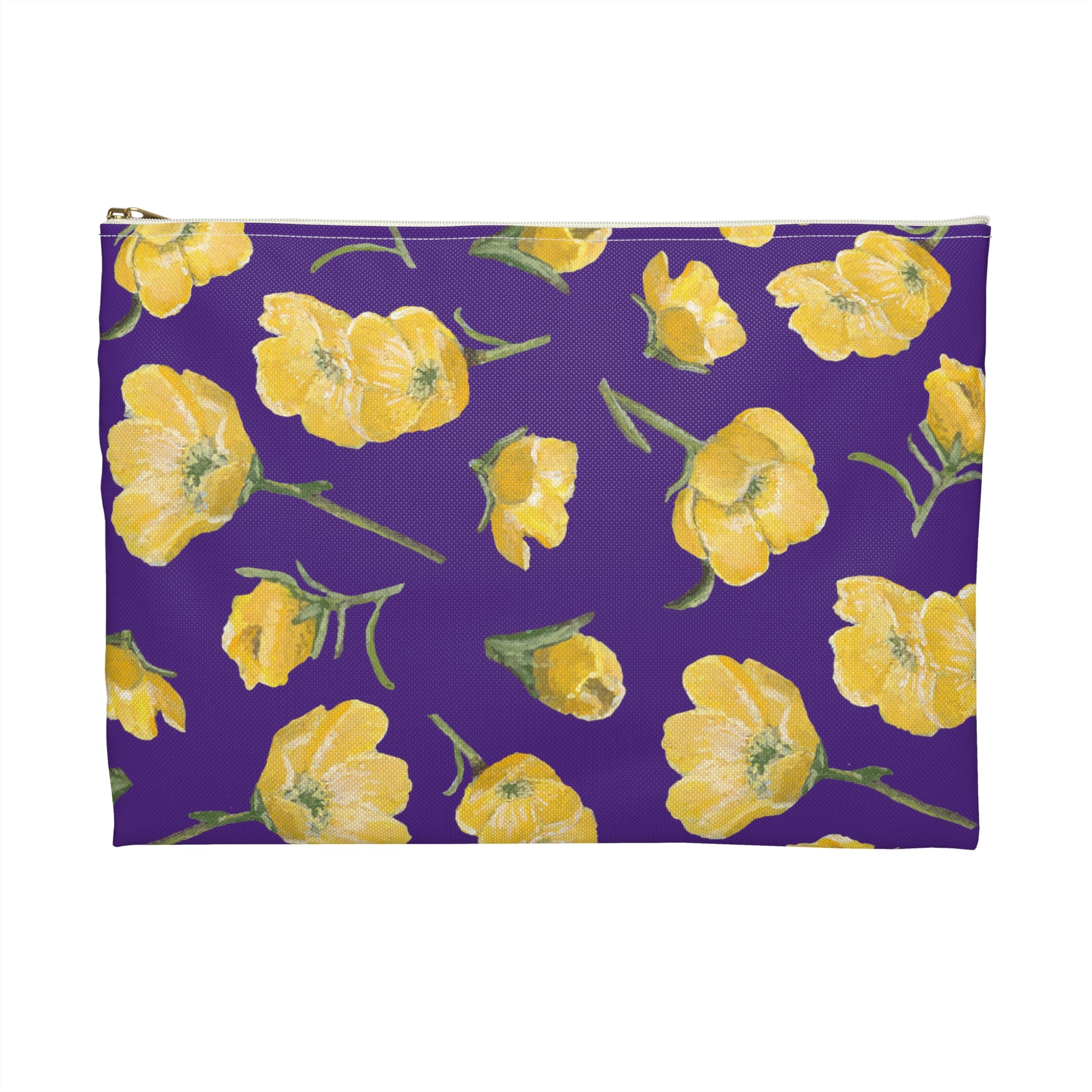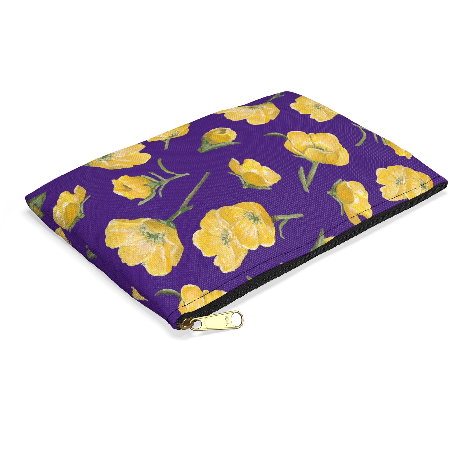 Accessory Pouch, Buttercups, Purple Background, Oklahoma Wildflower, Yellow Floral