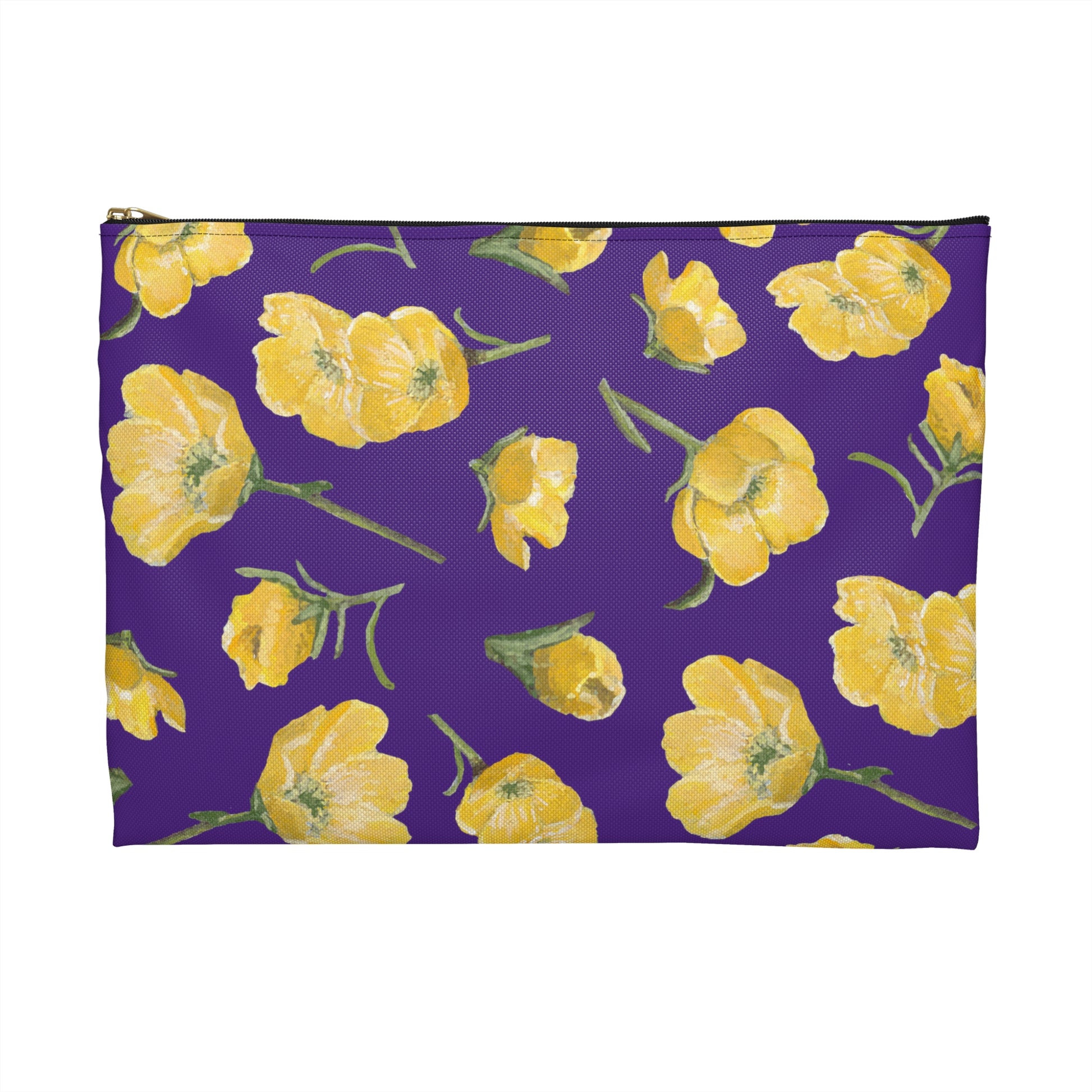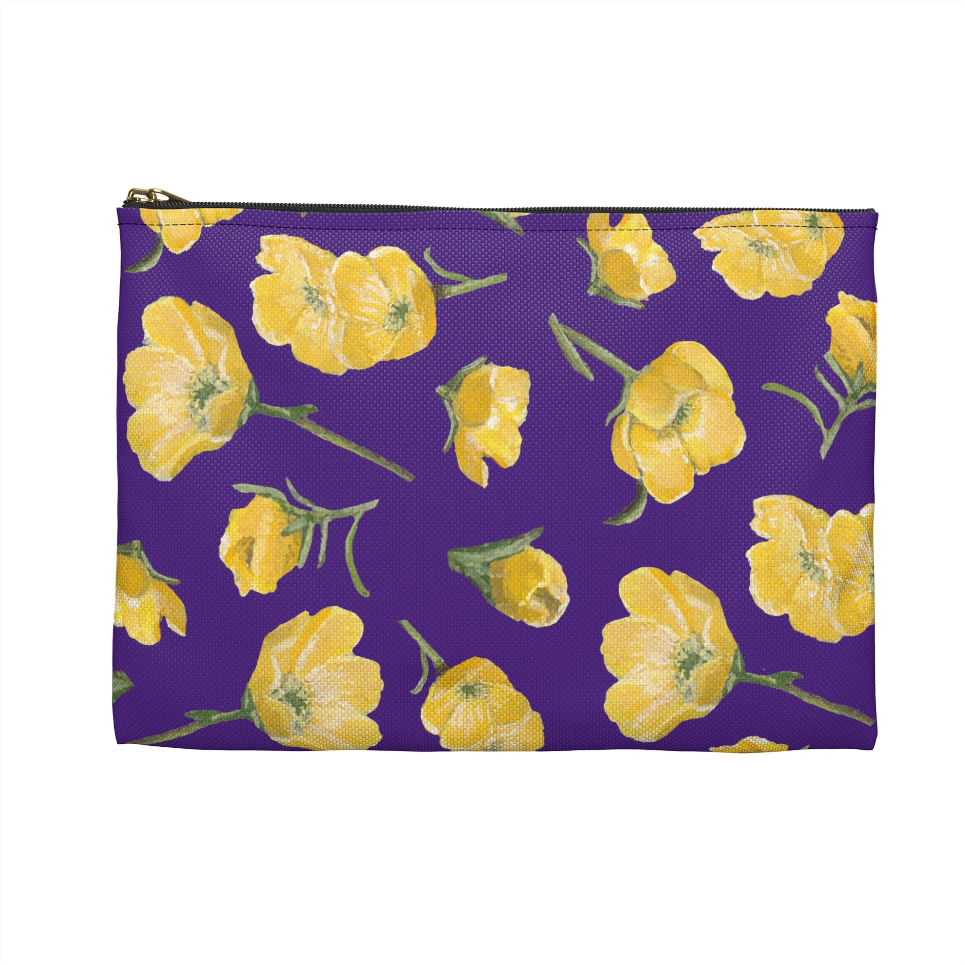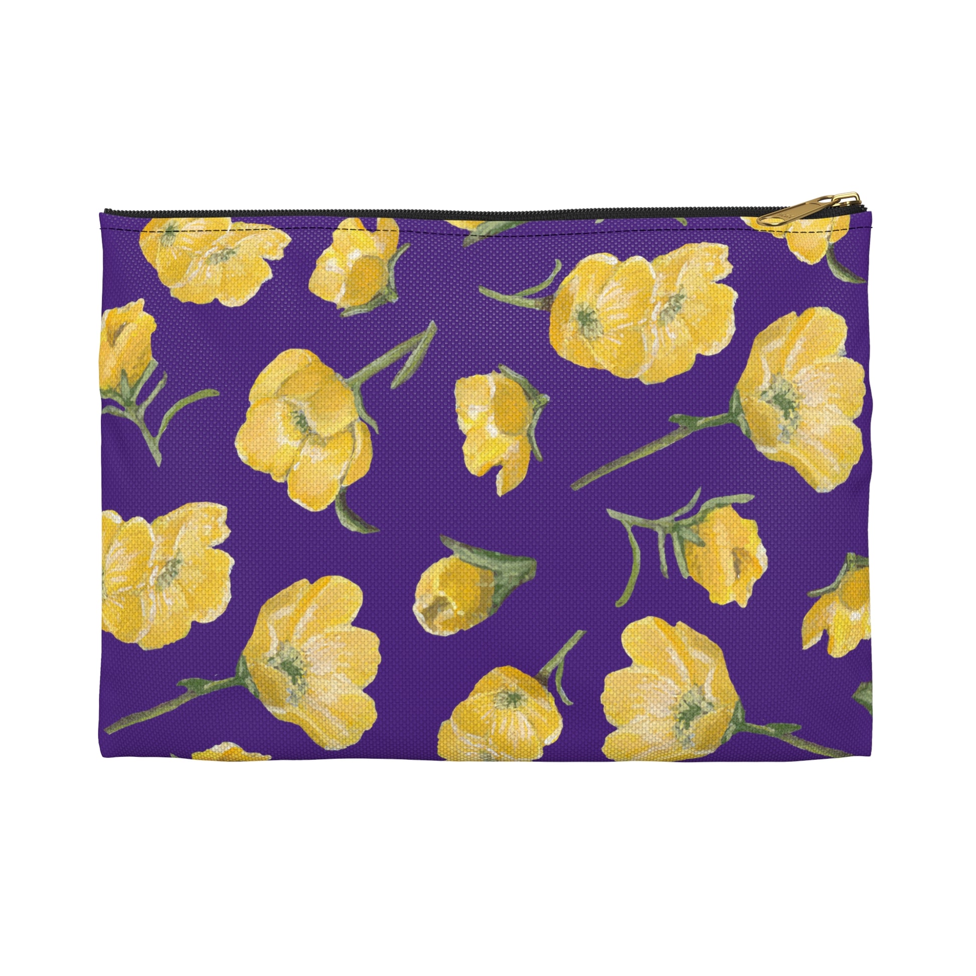 Accessory Pouch, Buttercups, Purple Background, Oklahoma Wildflower, Yellow Floral