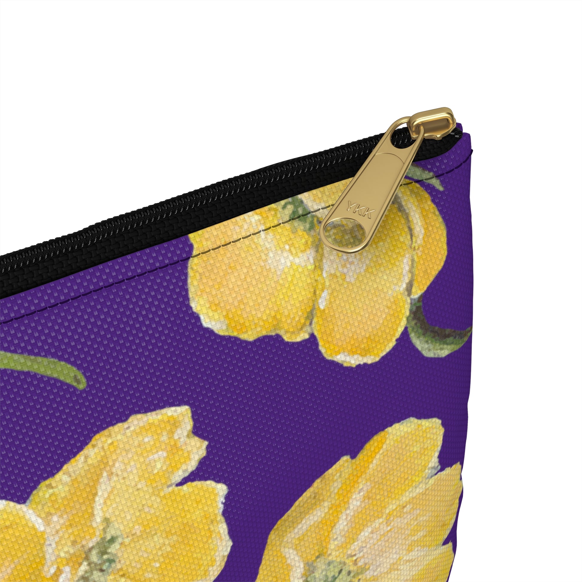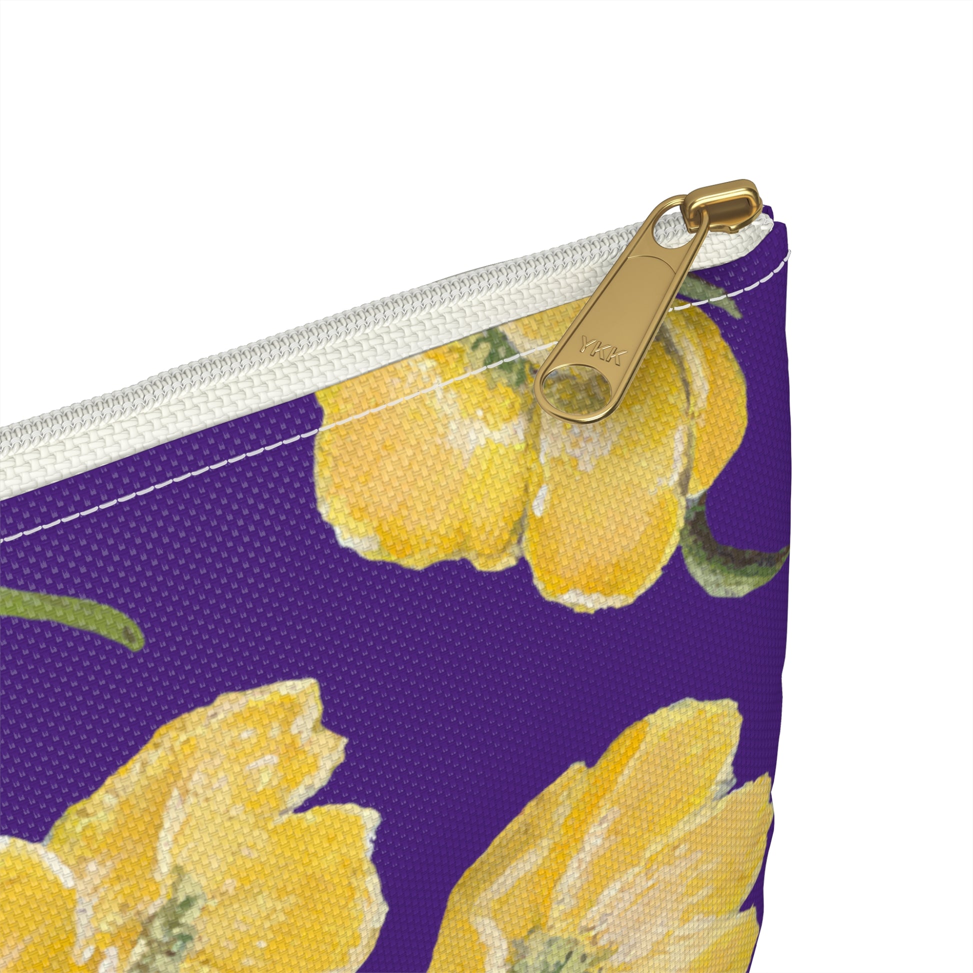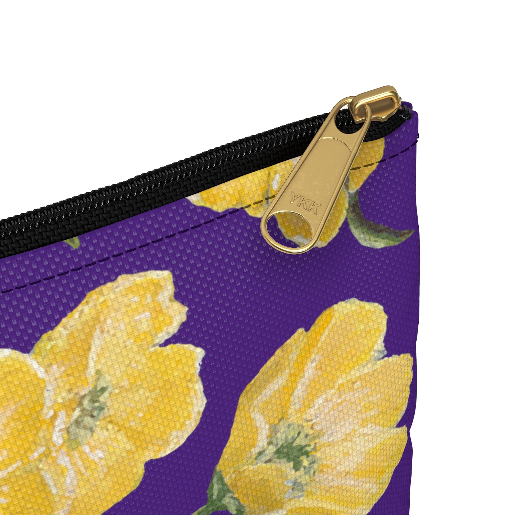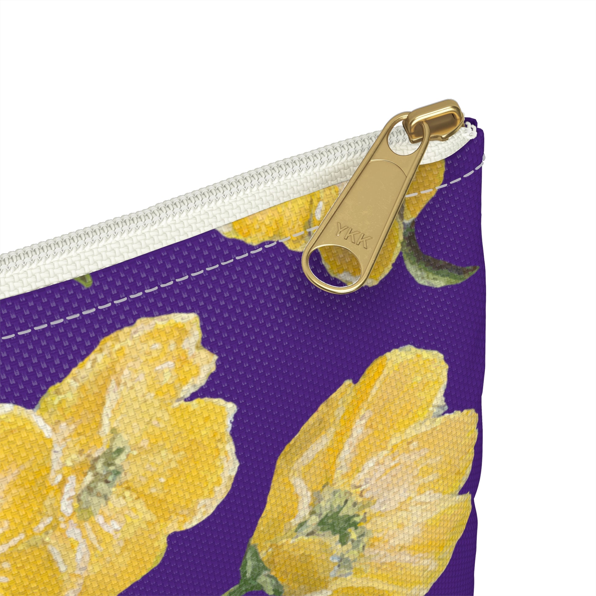 Accessory Pouch, Buttercups, Purple Background, Oklahoma Wildflower, Yellow Floral