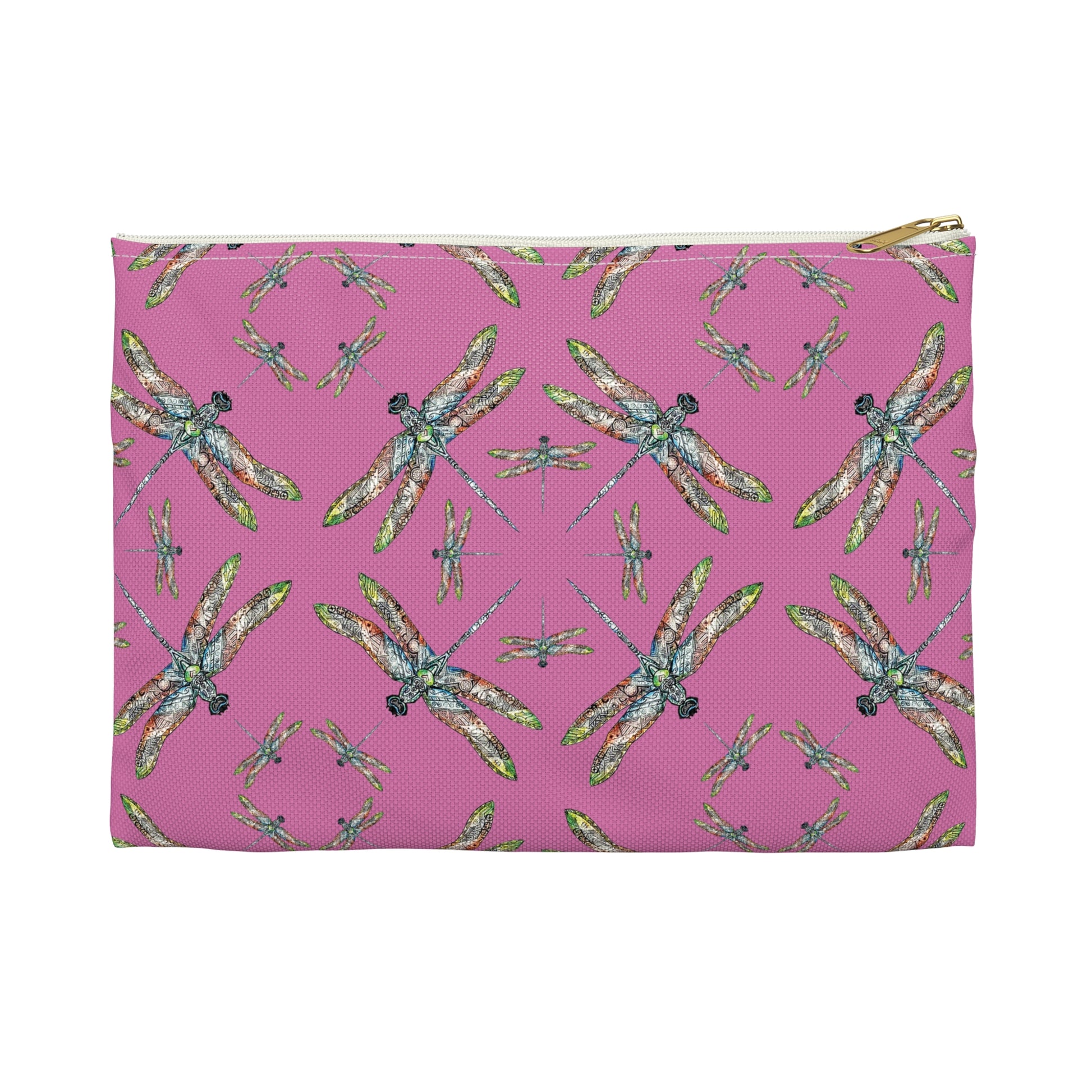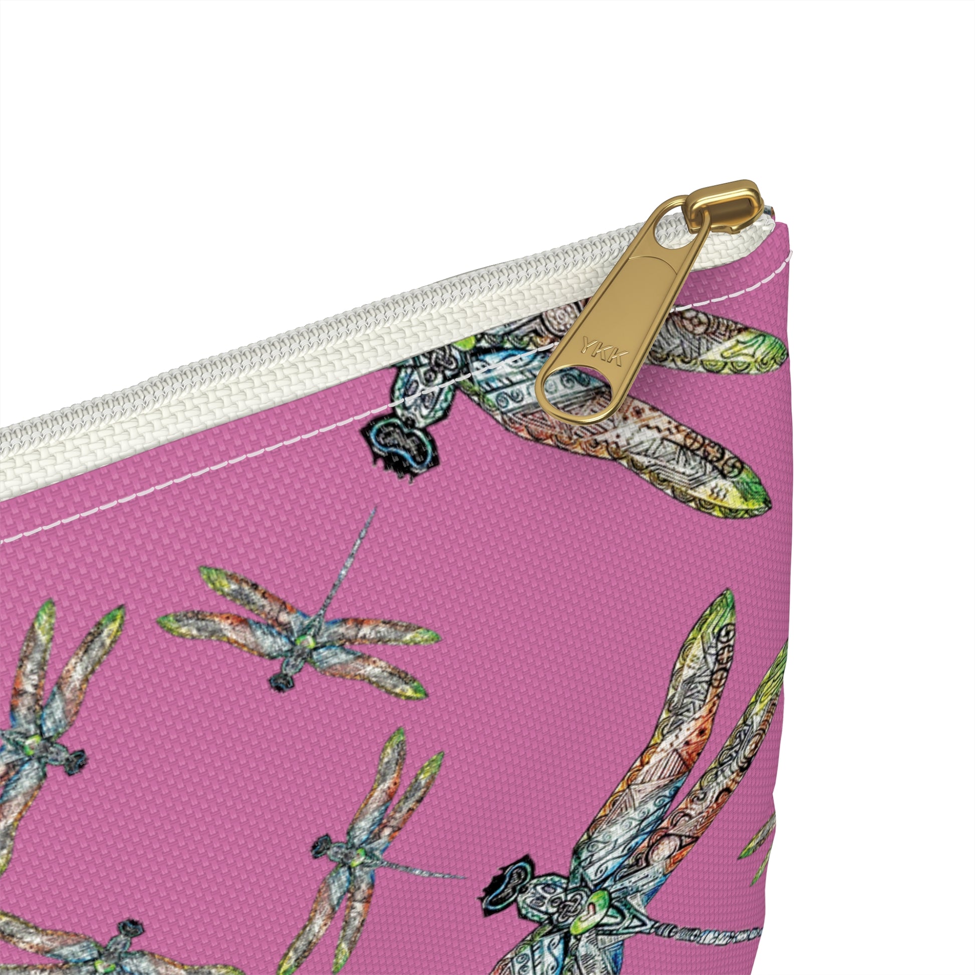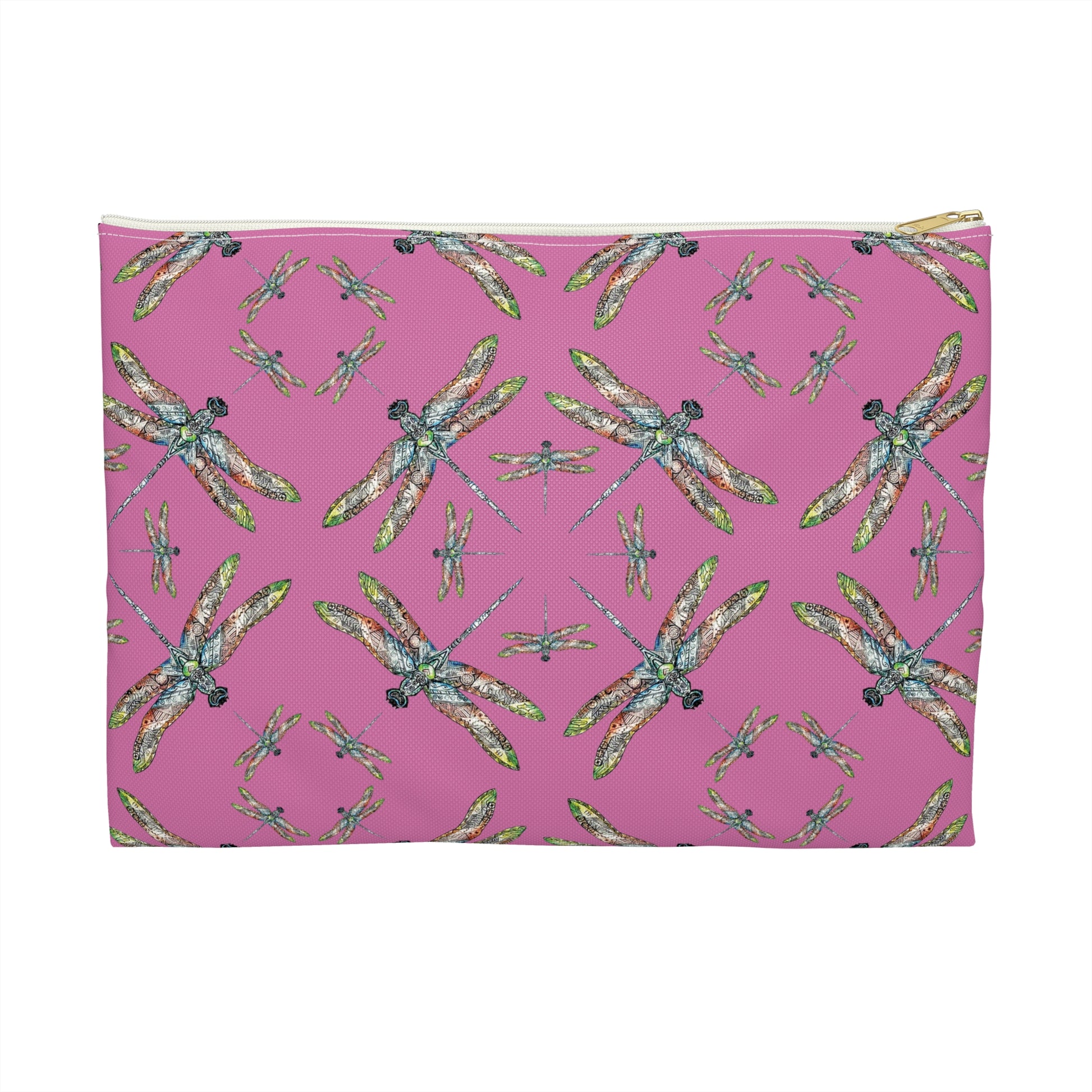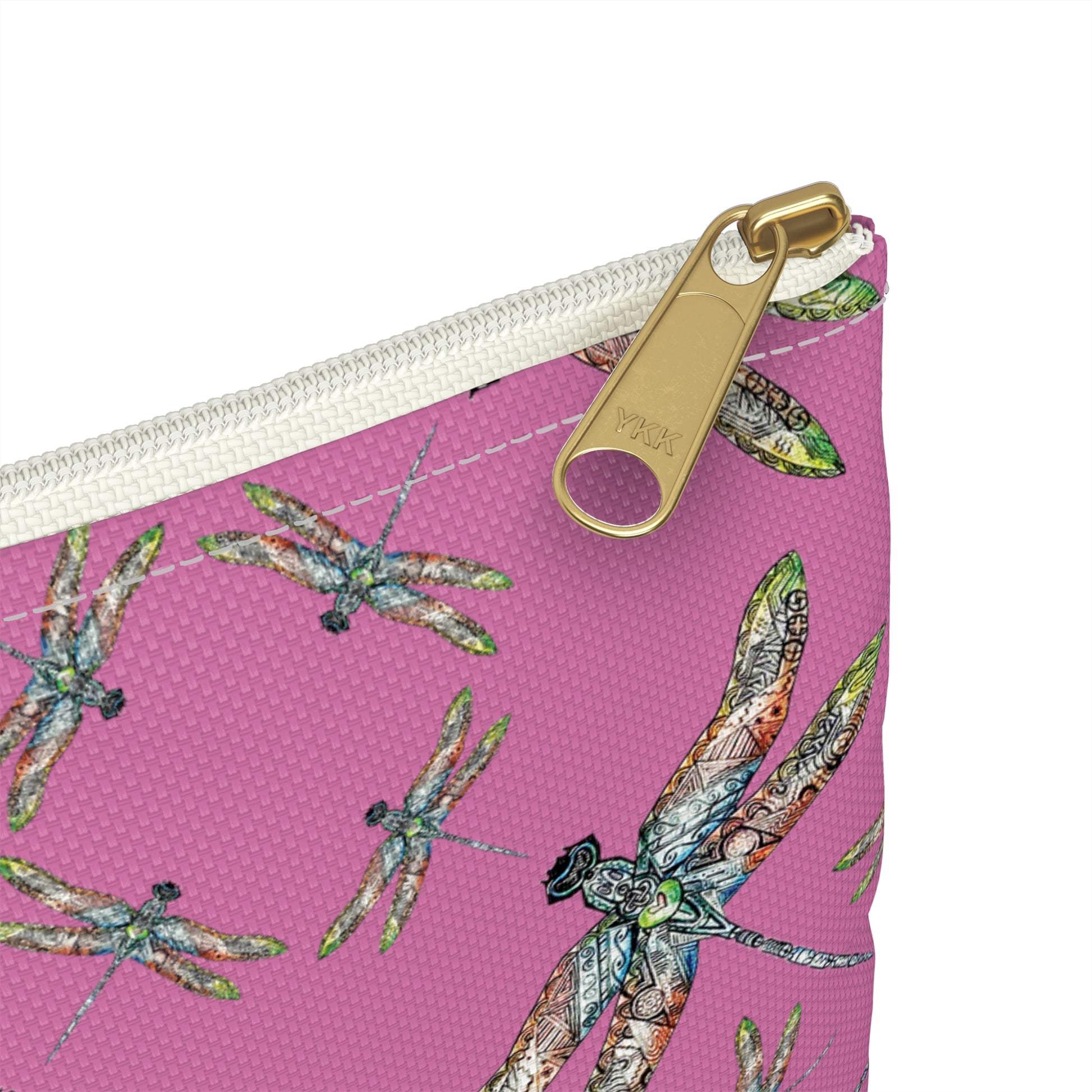 Accessory Pouch, Dragonfly, Pink, Native American design, Makeup bag, Pencil case, Travel cosmetic pouch