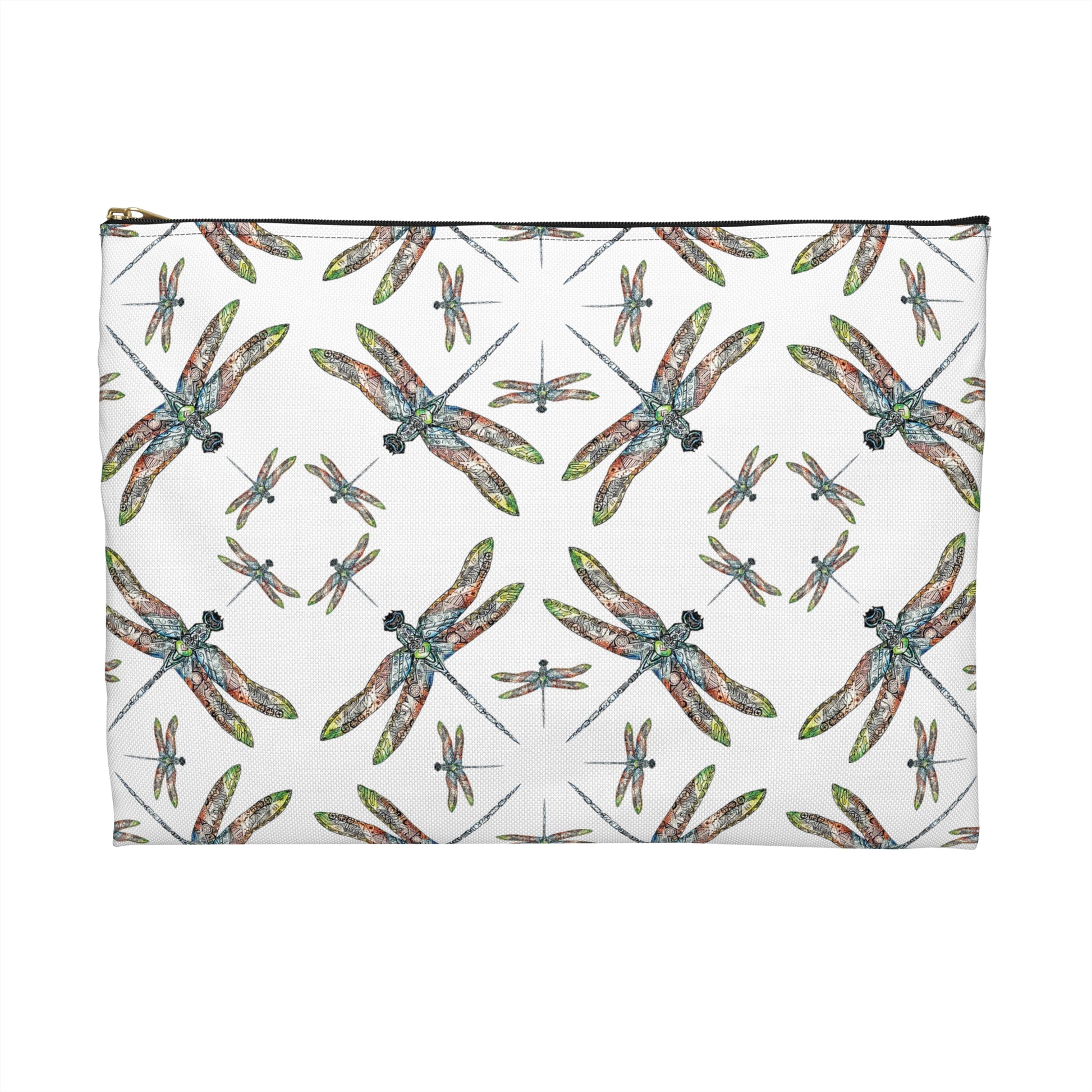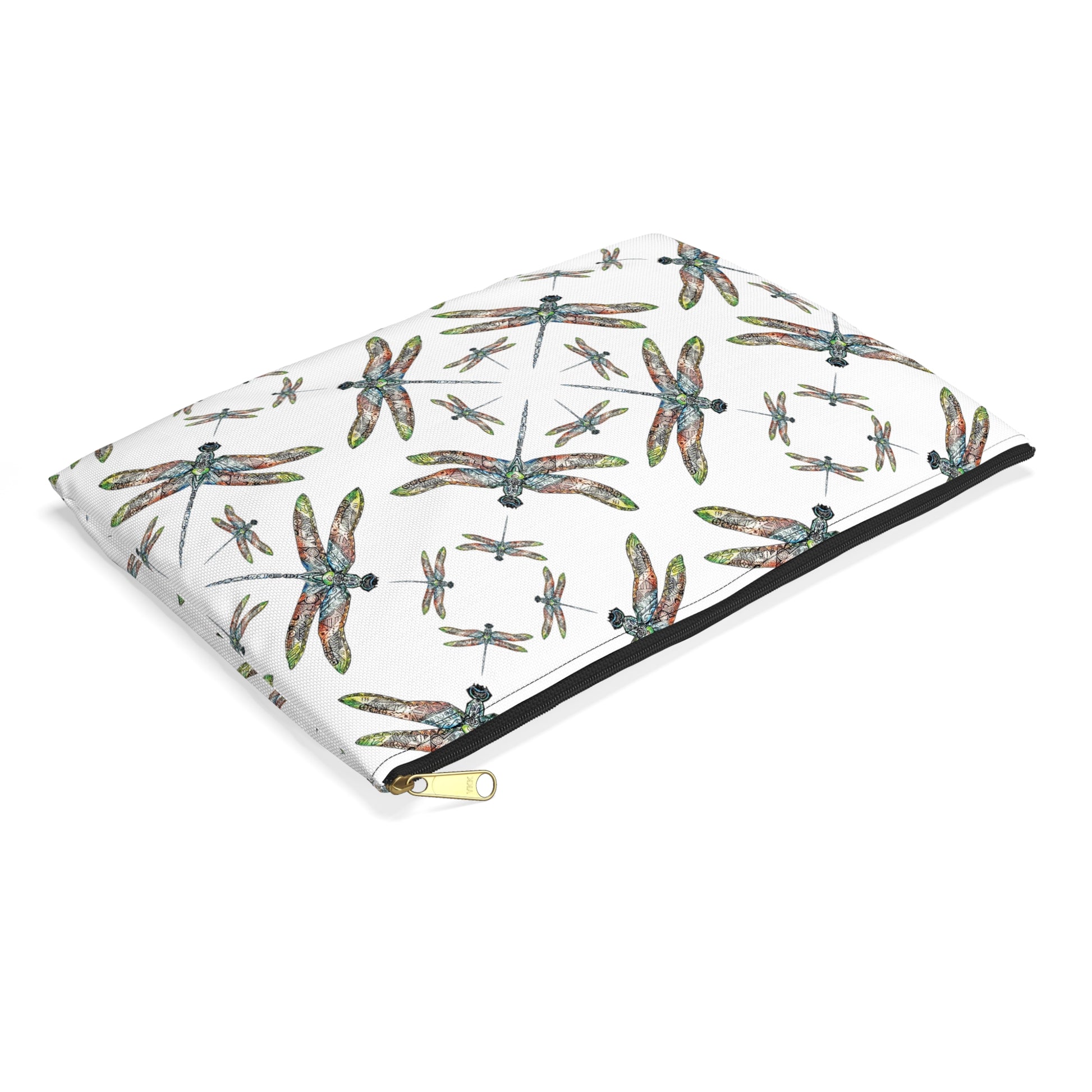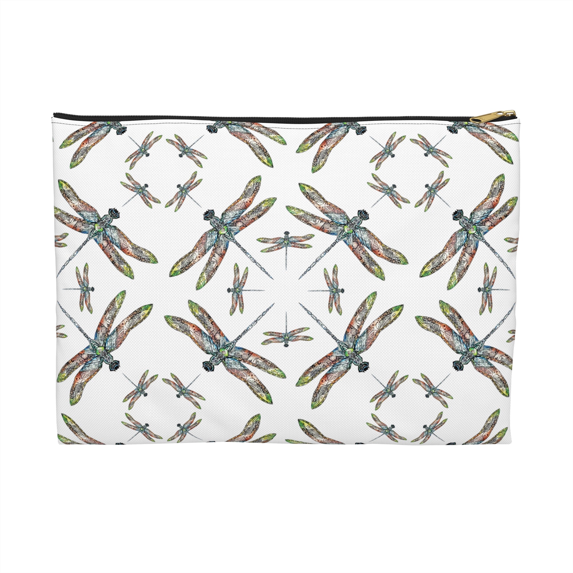 Accessory Pouch, Dragonfly, White, Native American design, Makeup bag, Pencil case, Travel cosmetic pouch