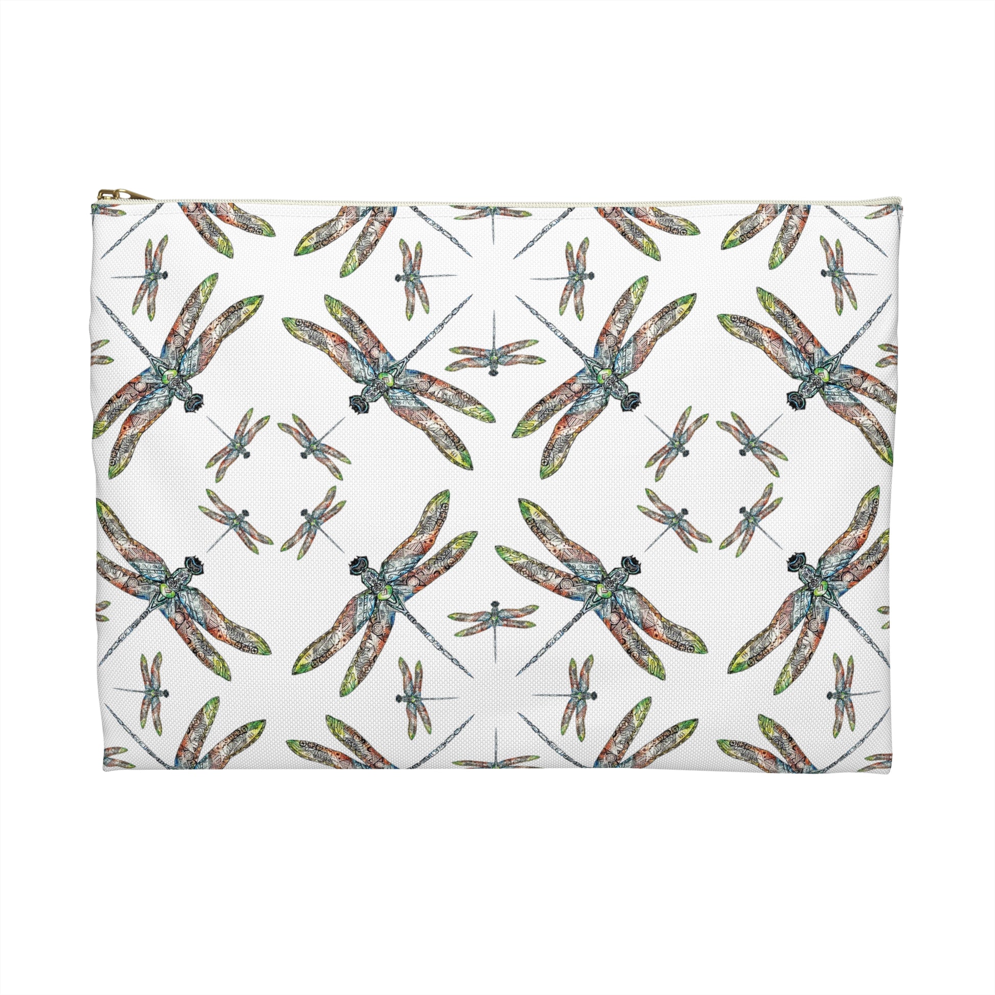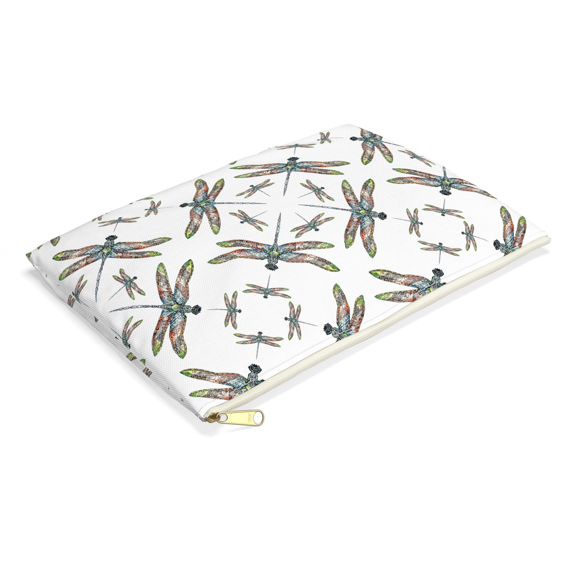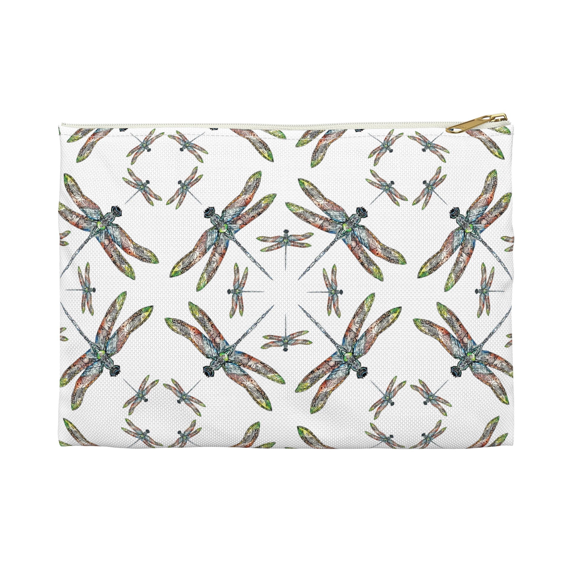 Accessory Pouch, Dragonfly, White, Native American design, Makeup bag, Pencil case, Travel cosmetic pouch
