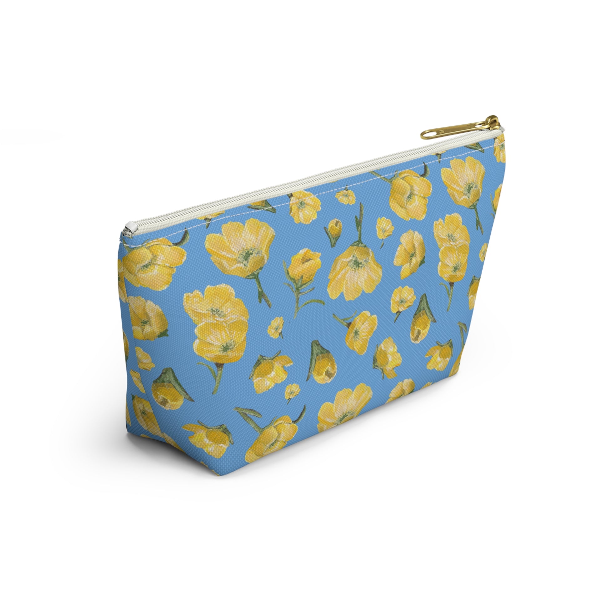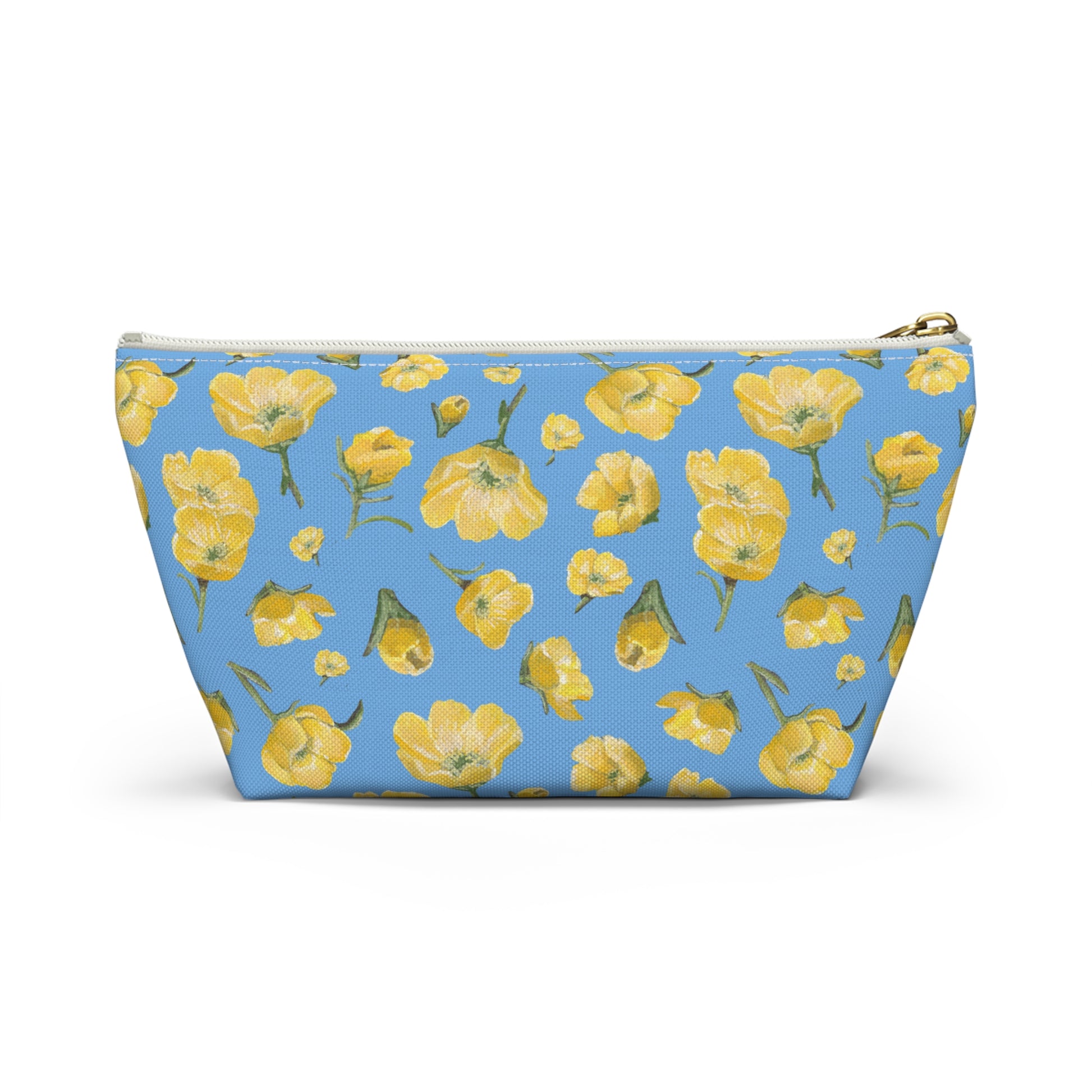 Accessory Pouch w T - bottom -Buttercups, Light Blue & Yellow - Floral Makeup Bag