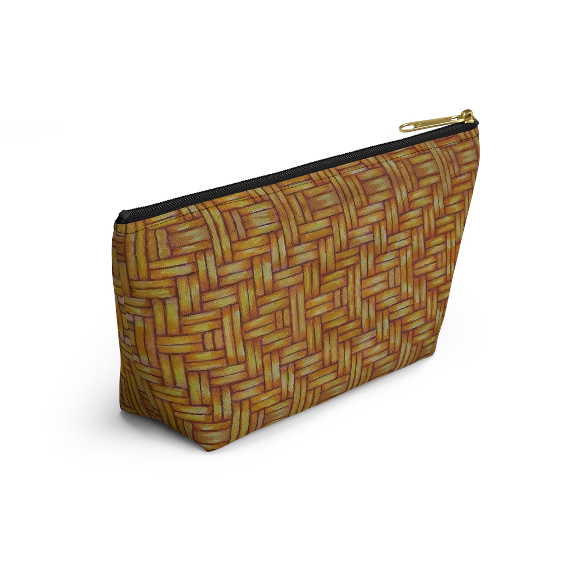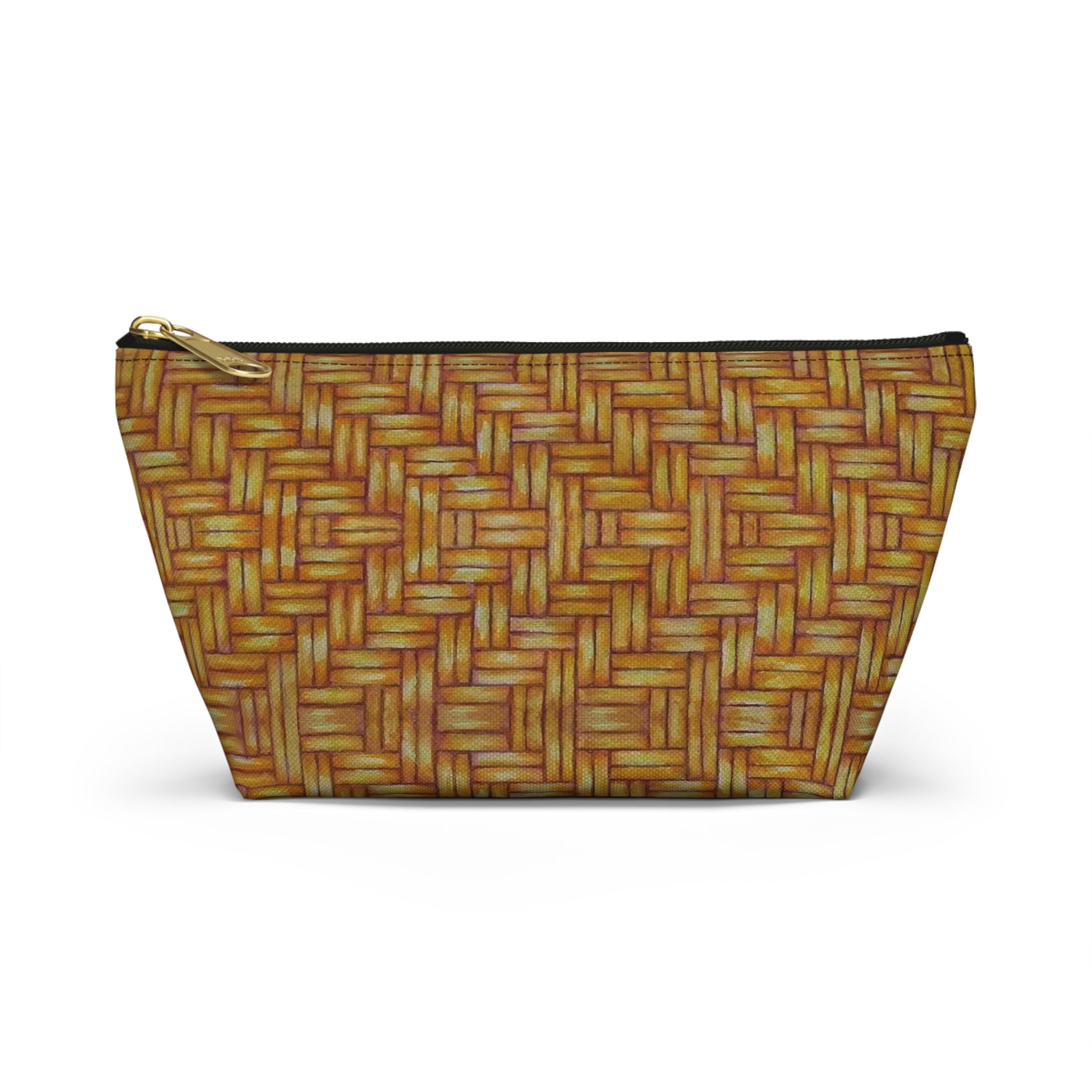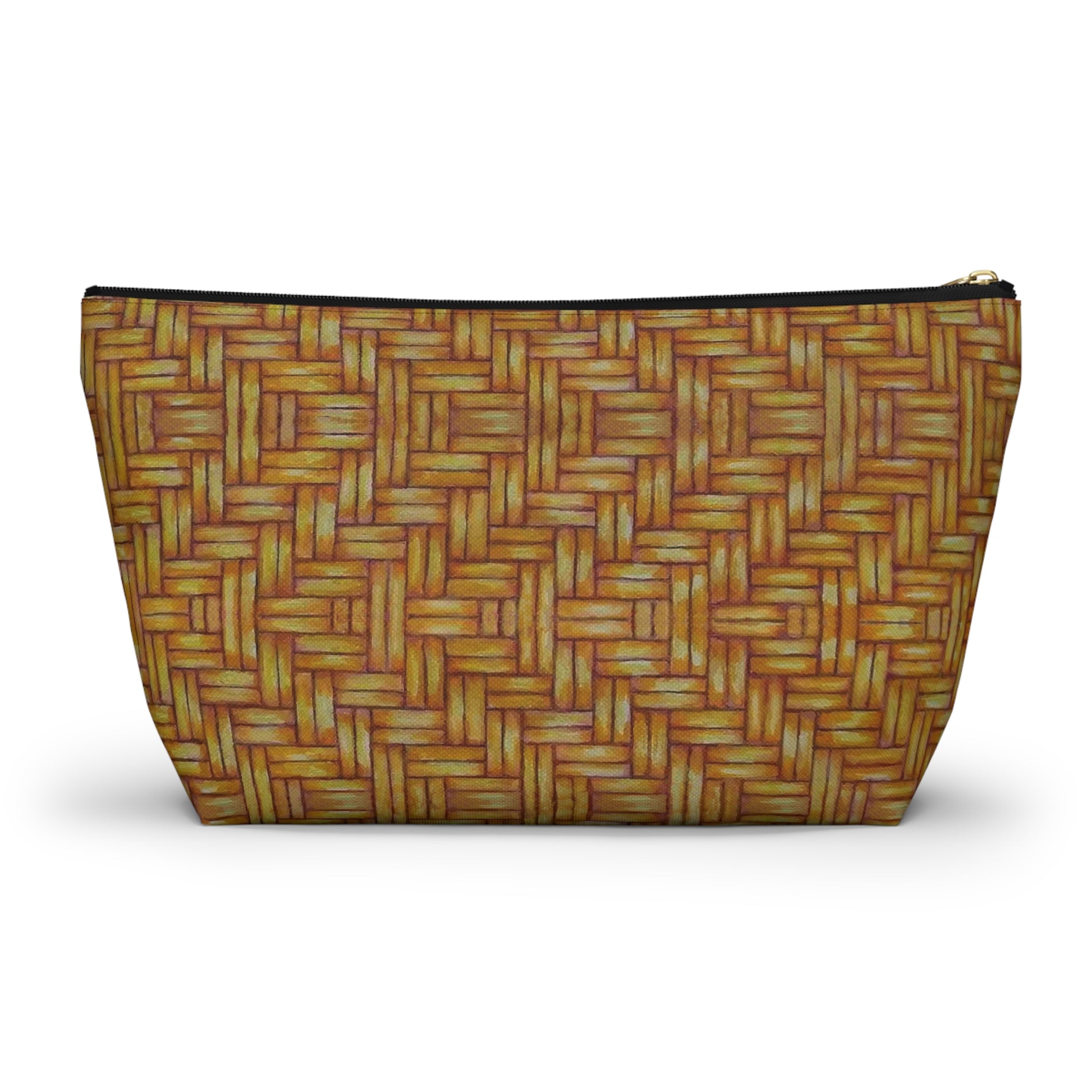 Accessory Pouch w T-bottom, Native American, Euchee basketweave design, pencil case, cosmetic travel bag, zipper bag, catch all