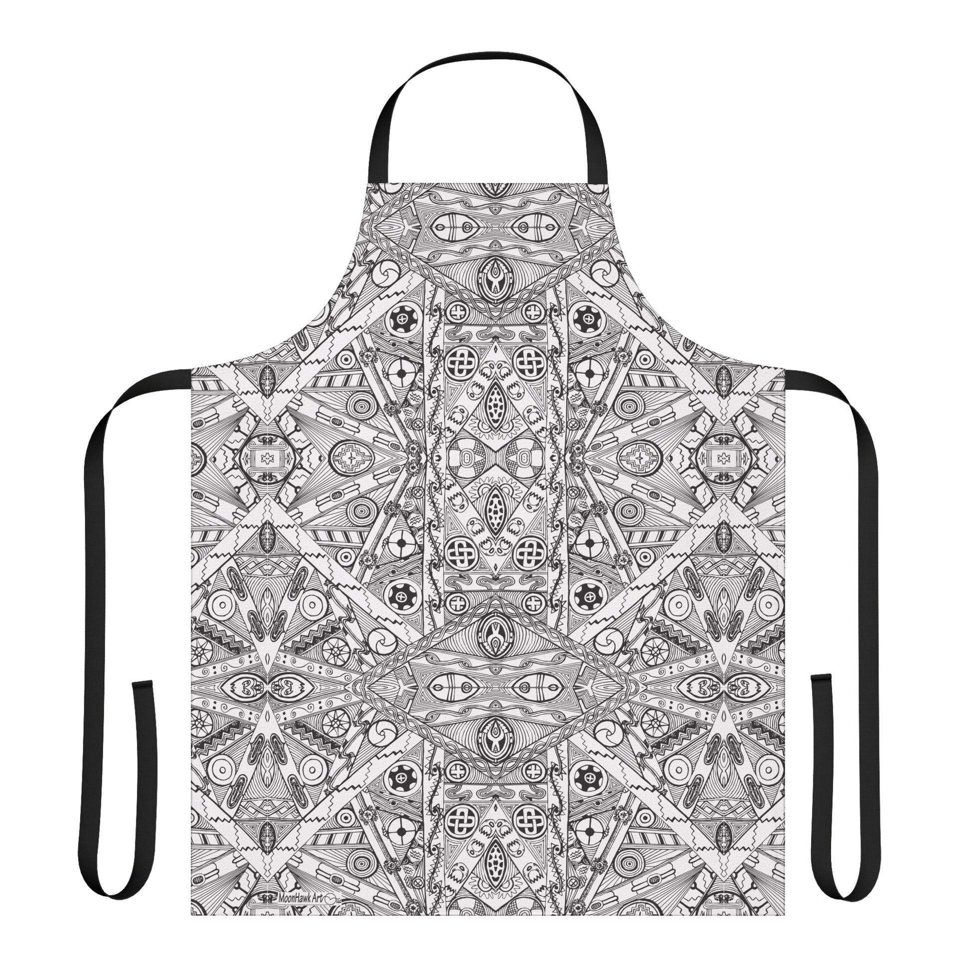 Apron, Black and White, Tribal Motif, Geometric, Ancient Mound Symbols, Native American Design