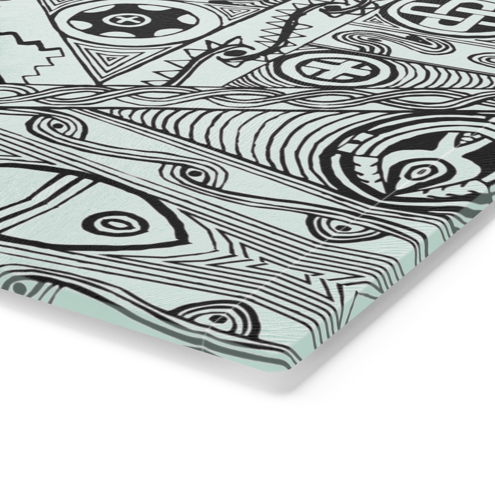 Cutting Board, Black and White Tribal Motif, Kitchen Accessory