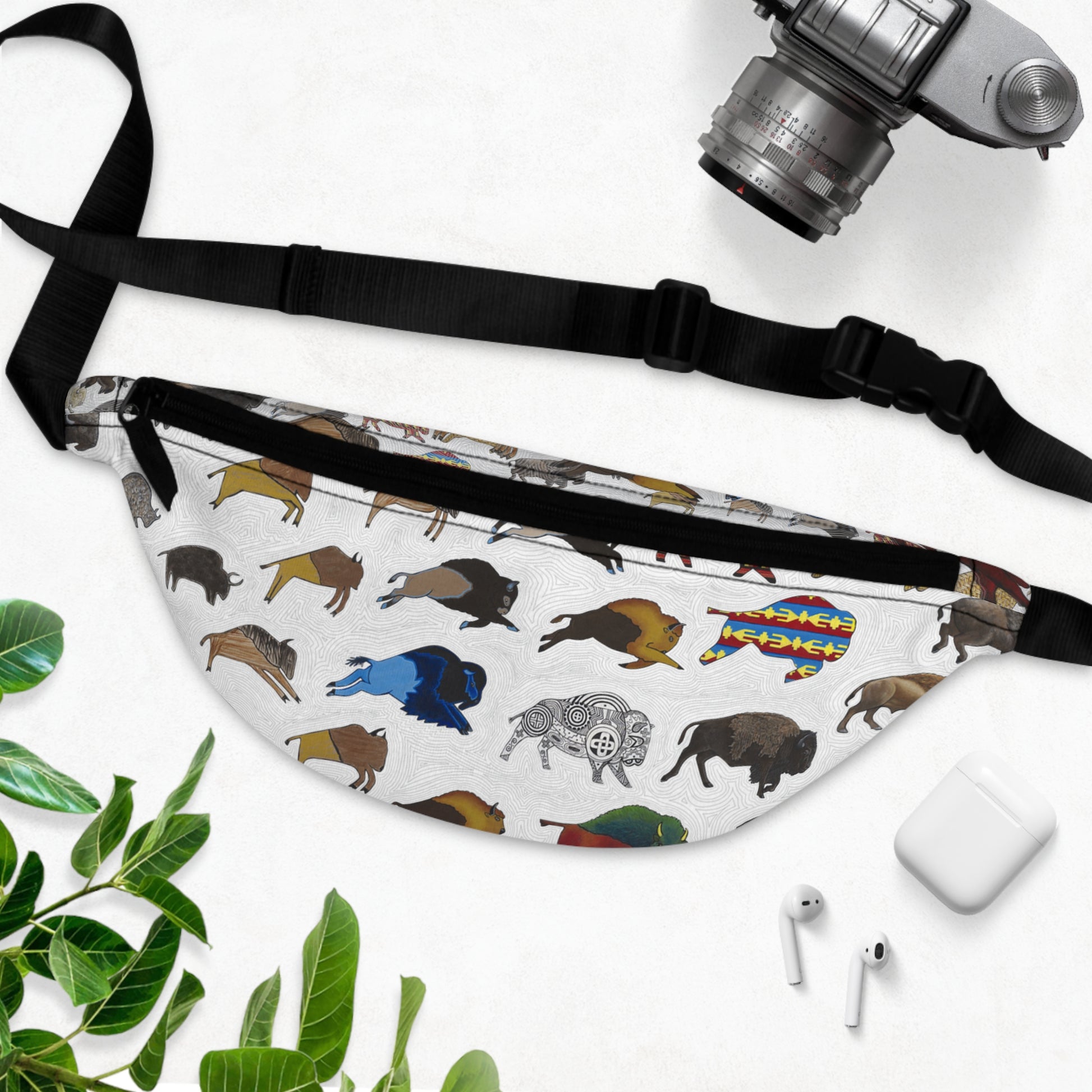 Fanny Pack, White, Bison Transition, Buffalo, Native American, Indigenous Design