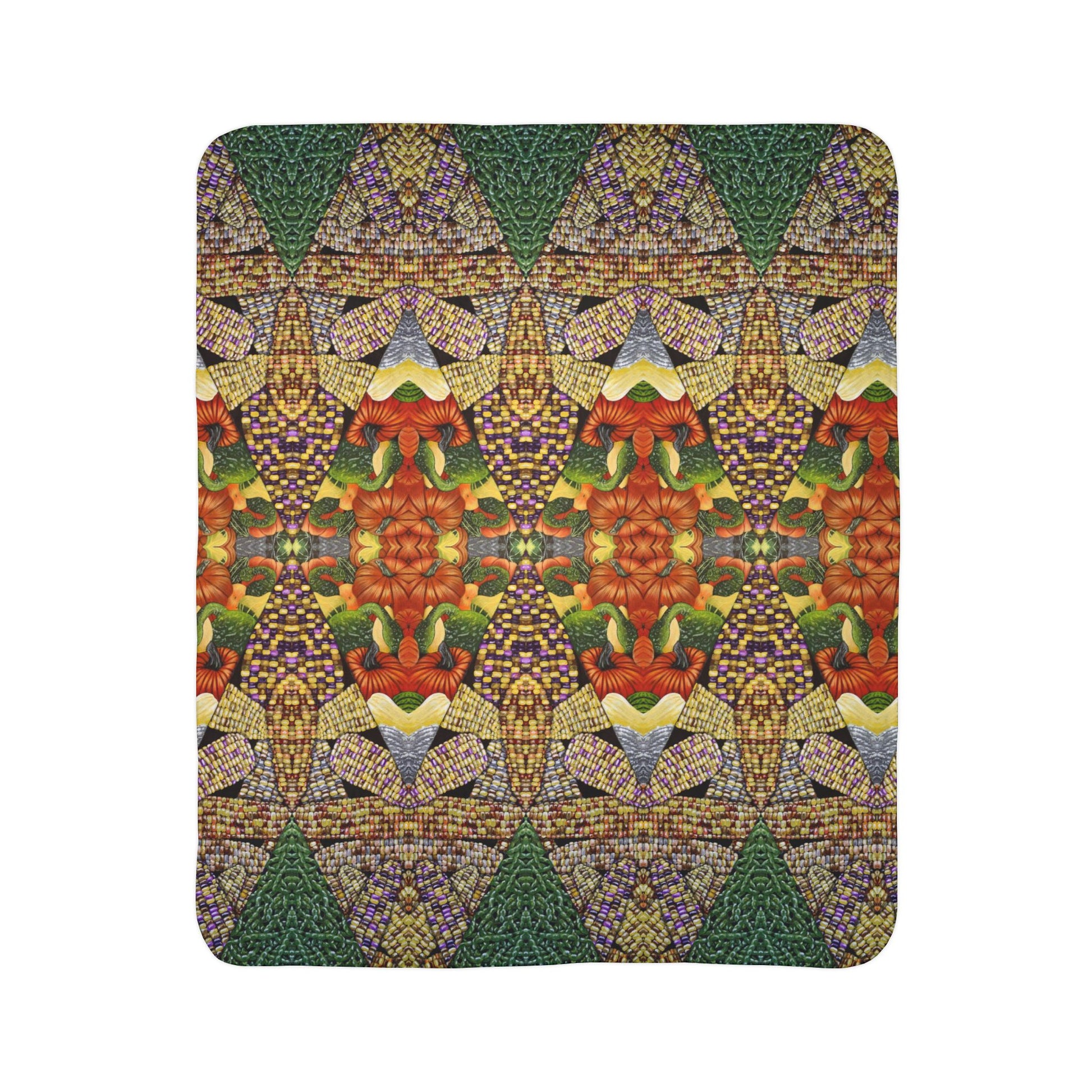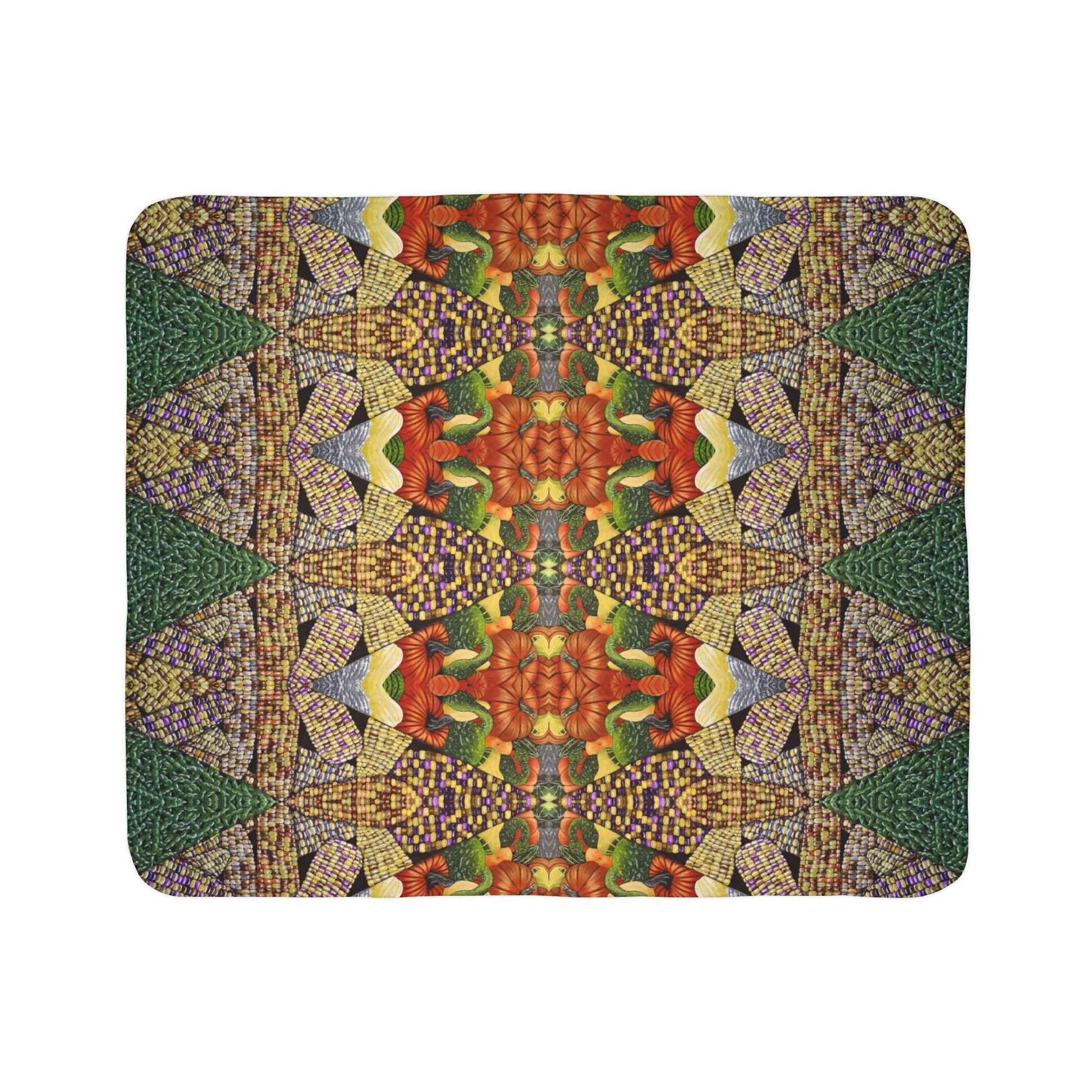 Fleece Sherpa Blanket, Three Sisters Design, Native American, Corn, Squash, Beans, Tribal Farming