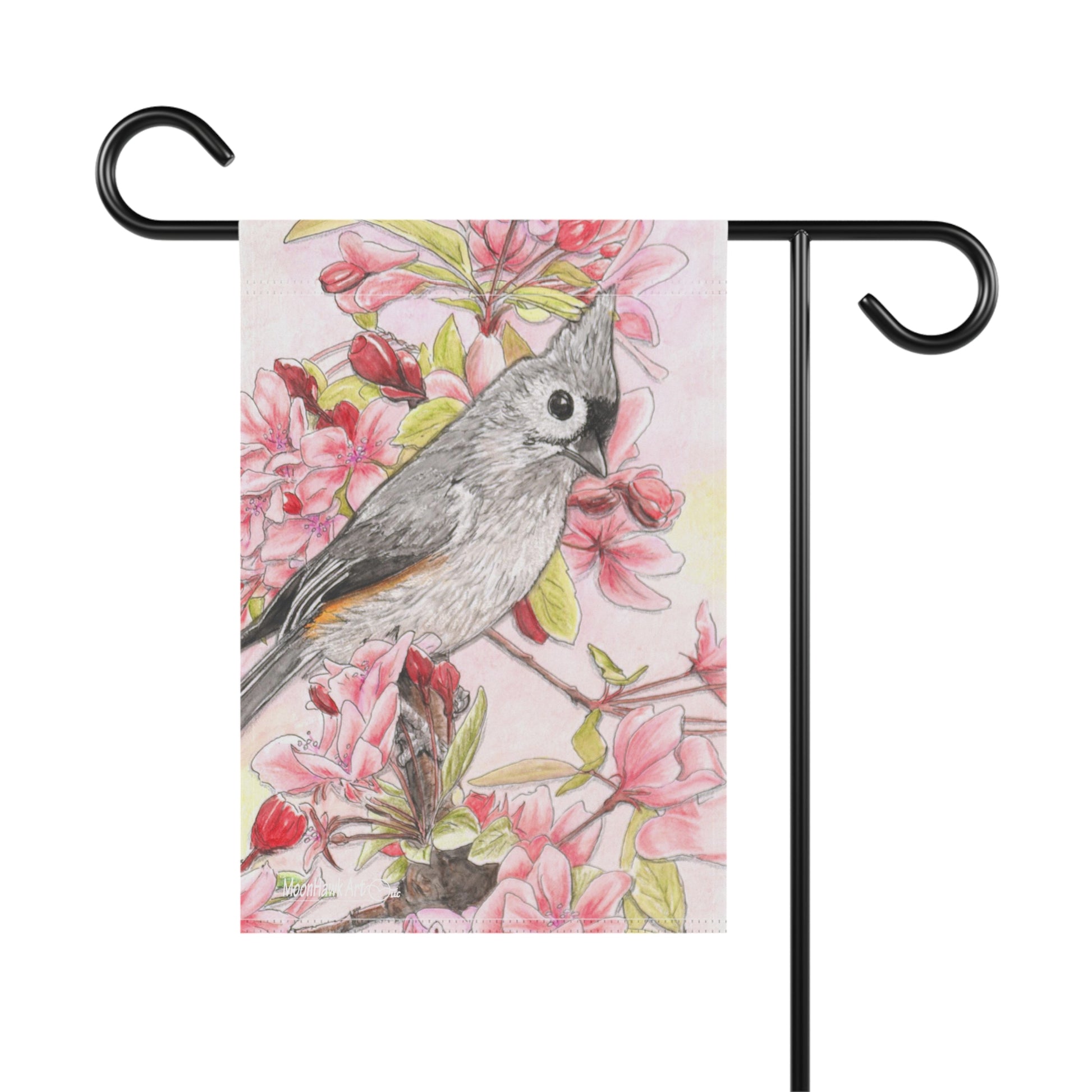 Garden & House Banner, Tufted Titmouse with Pink Floral