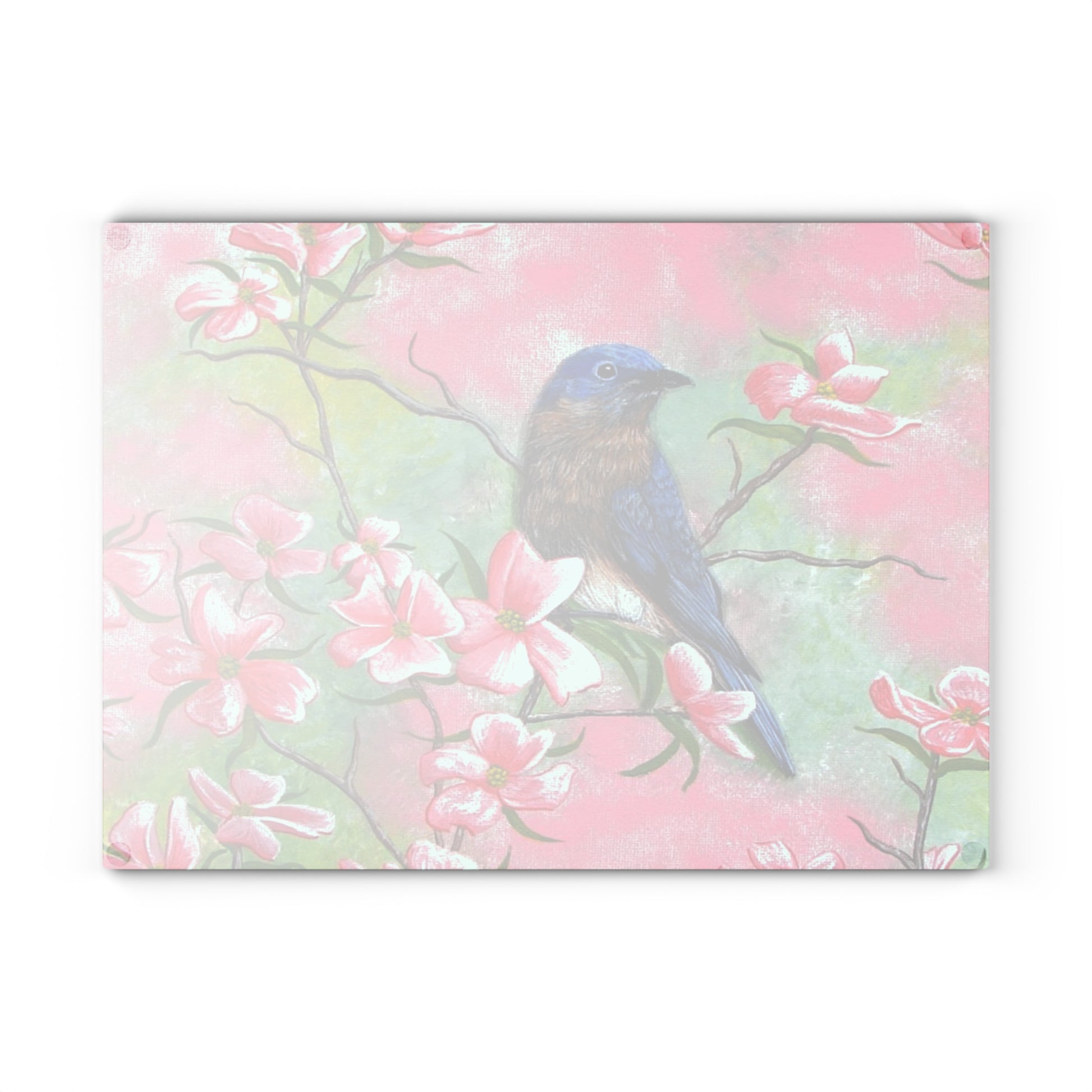 Glass Cutting Board, Kitchen Accessory, Eastern Bluebird on Pink Dogwood