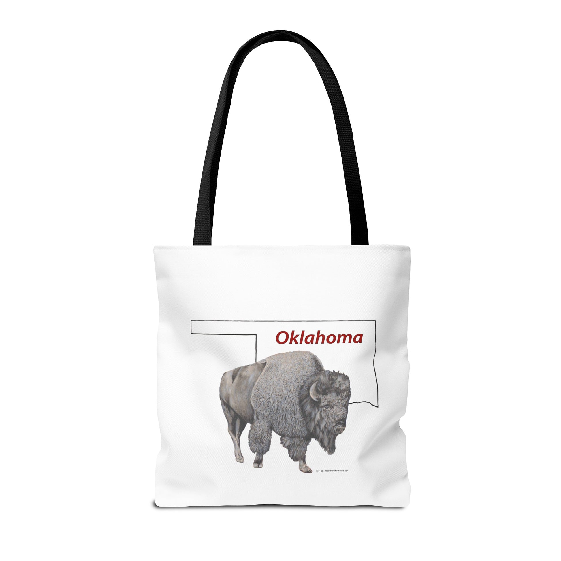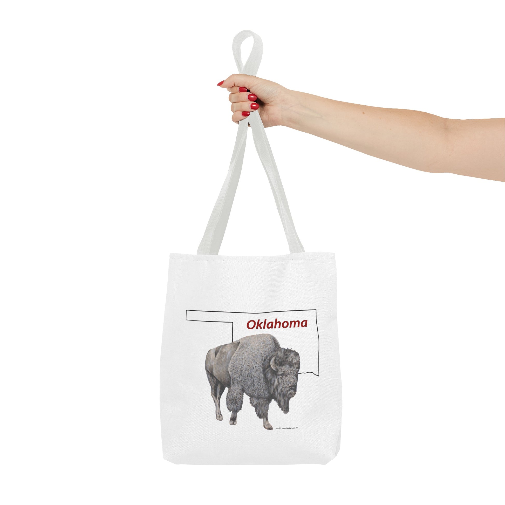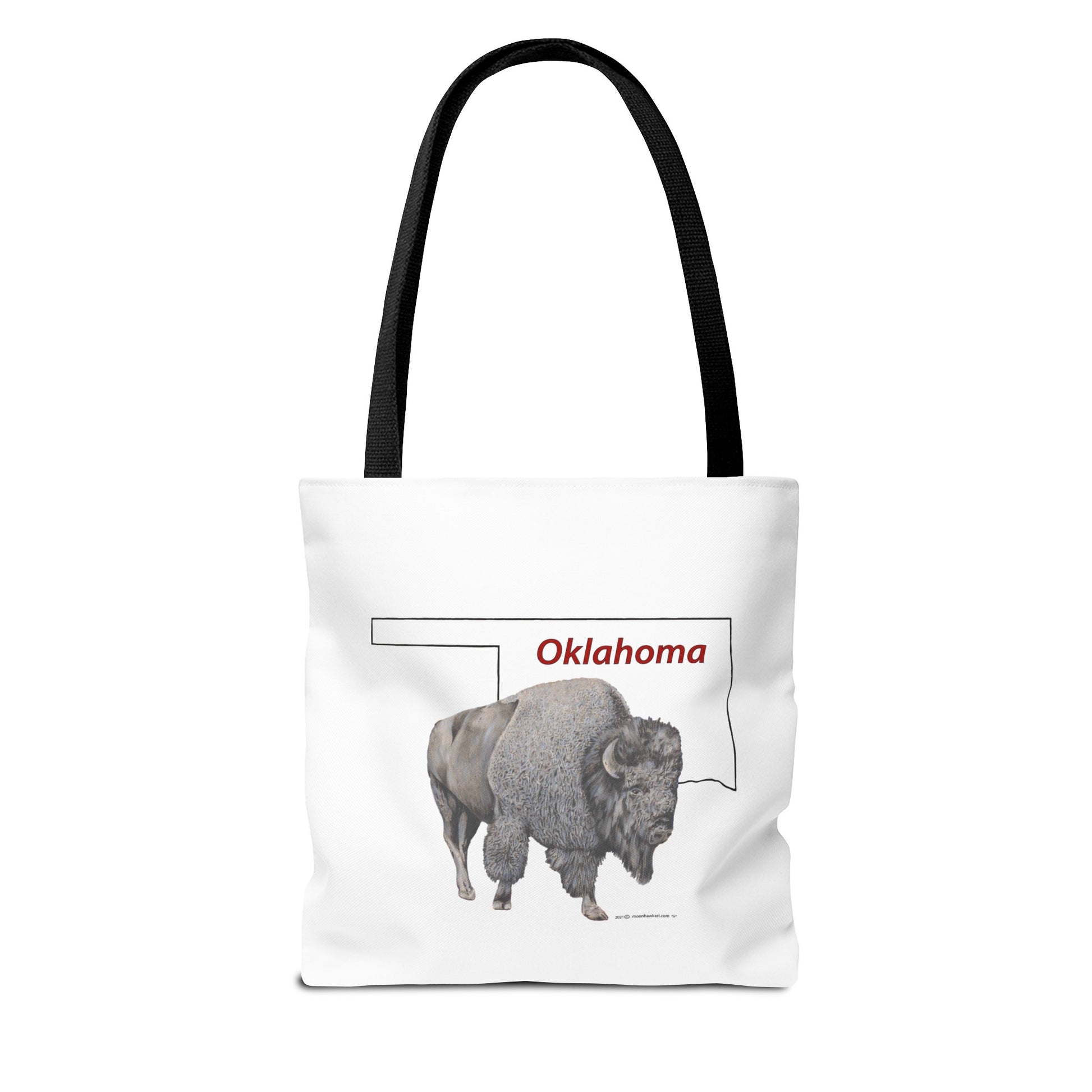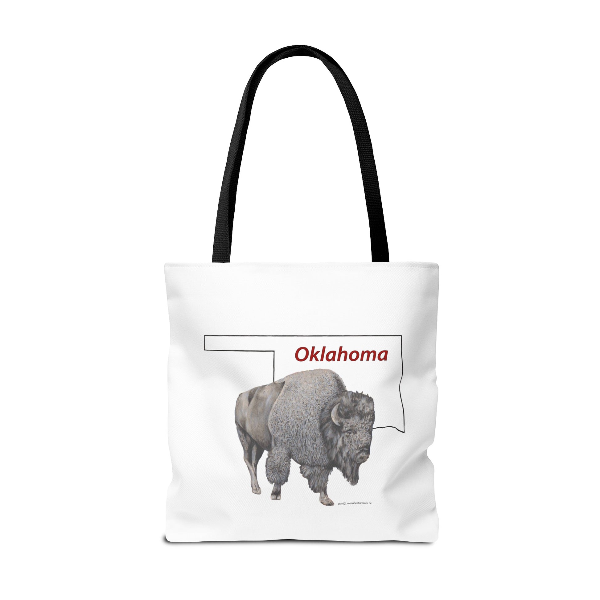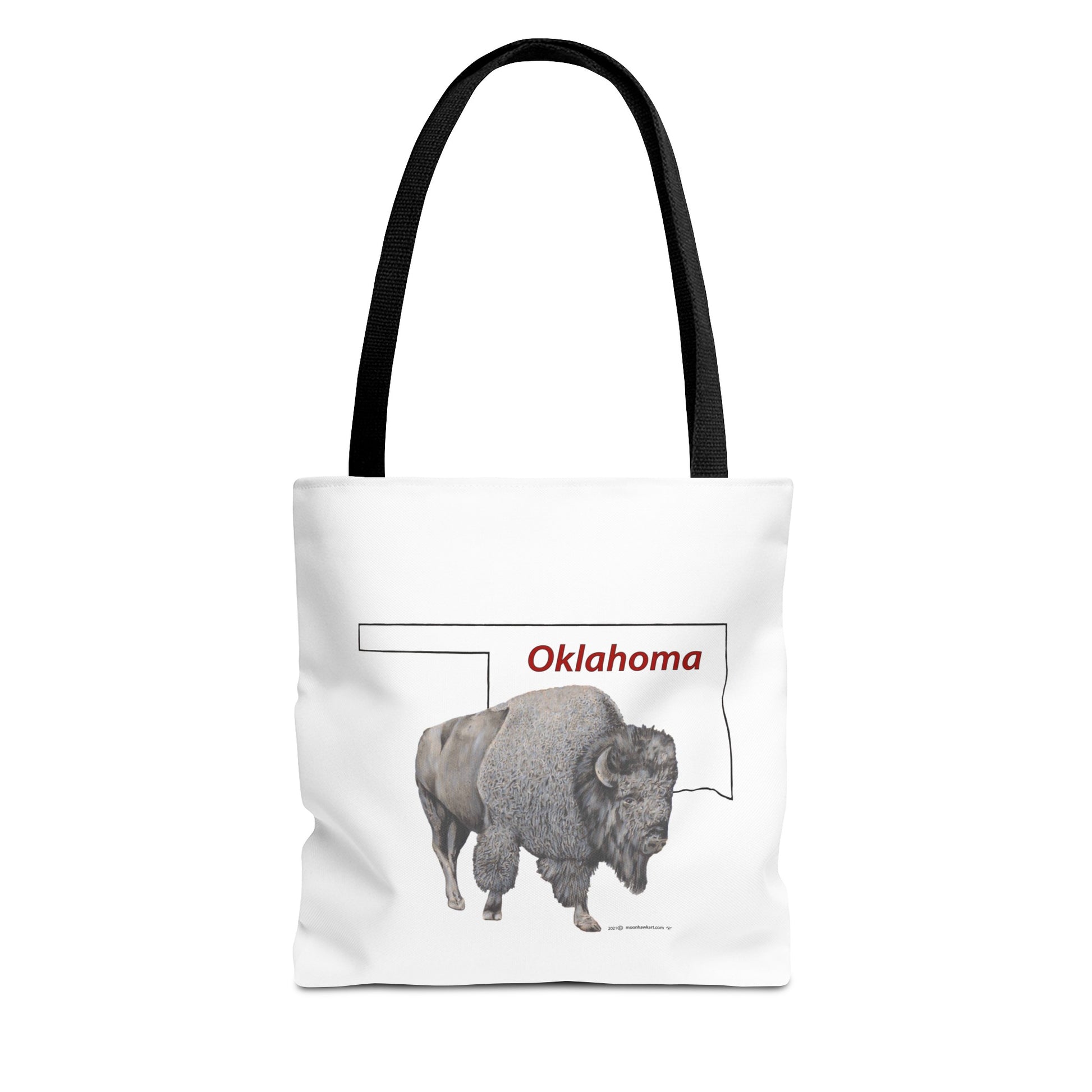 Available in 3 sizes to add both functionality and style, these Oklahoma Bison tote bags come with multiple handle colors to match. Made with spun polyester, these bags feature double-stitched seams, cotton webbing straps, and nonwoven laminate lining for high-end durability. Created with dye sublimation for high-end visuals.