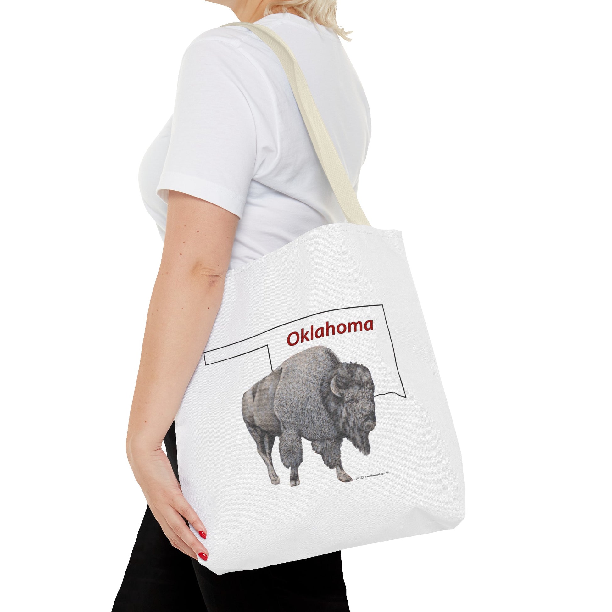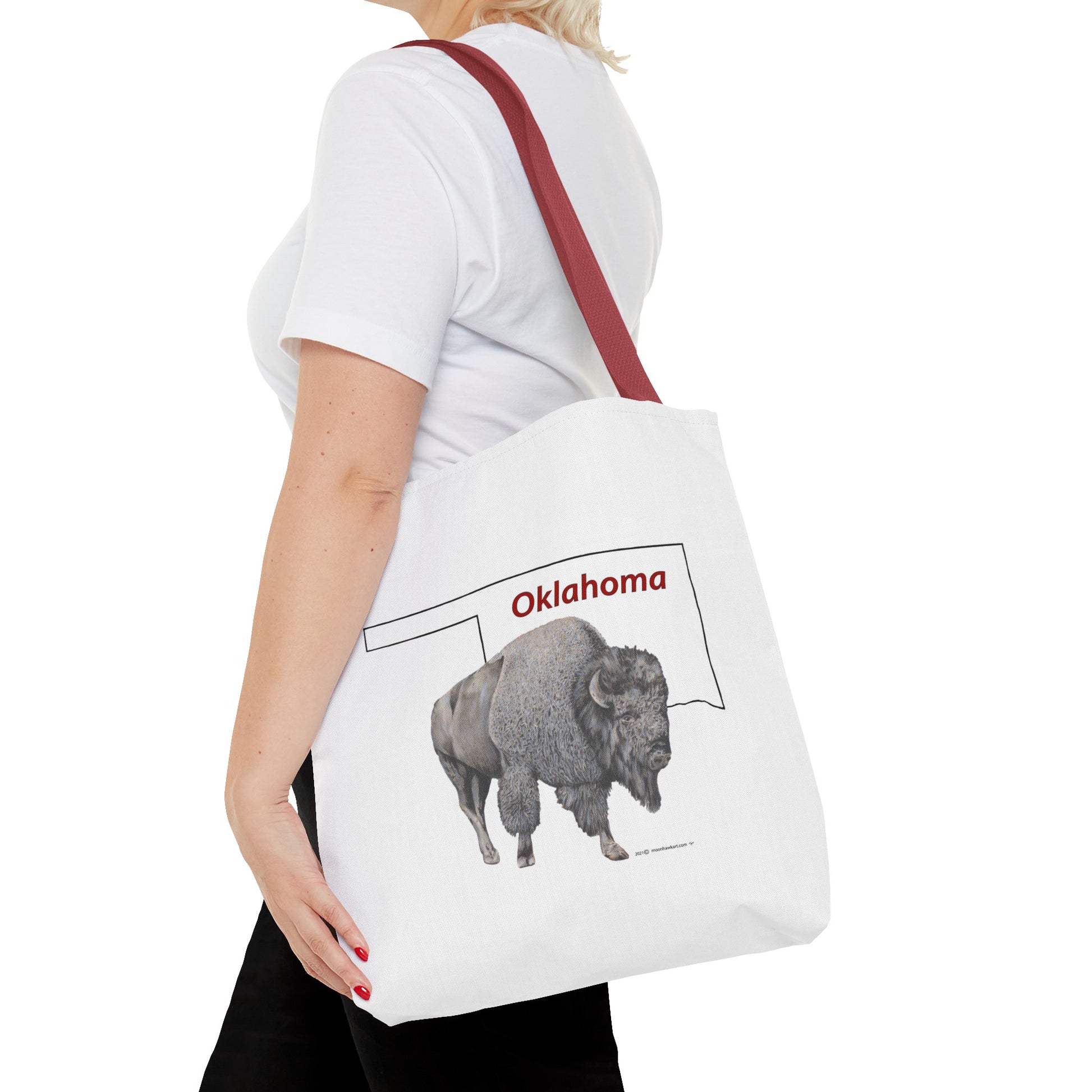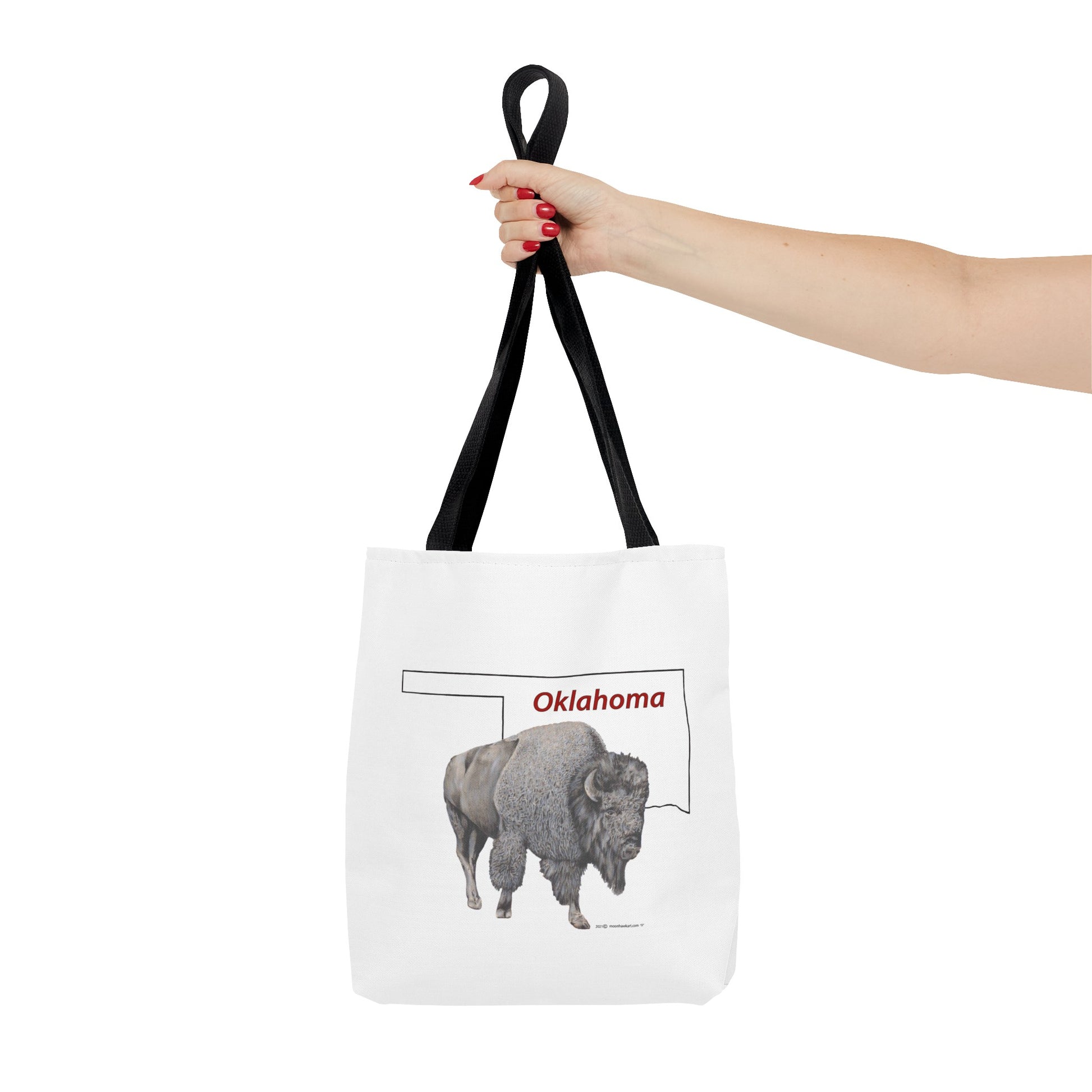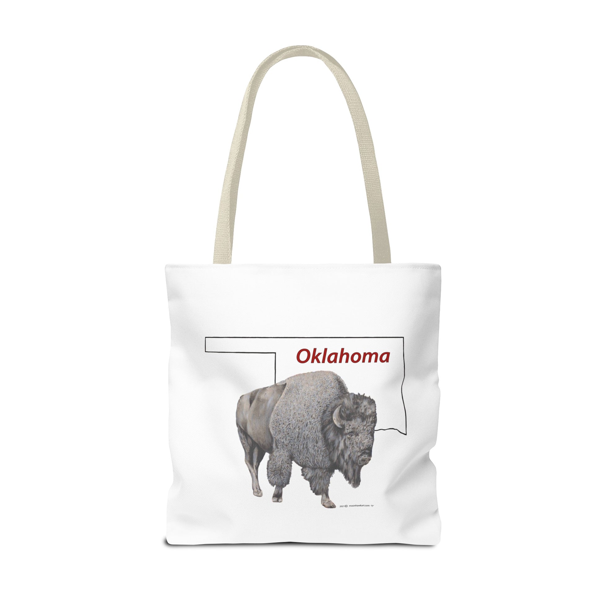 Available in 3 sizes to add both functionality and style, these Oklahoma Bison tote bags come with multiple handle colors to match. Made with spun polyester, these bags feature double-stitched seams, cotton webbing straps, and nonwoven laminate lining for high-end durability. Created with dye sublimation for high-end visuals.