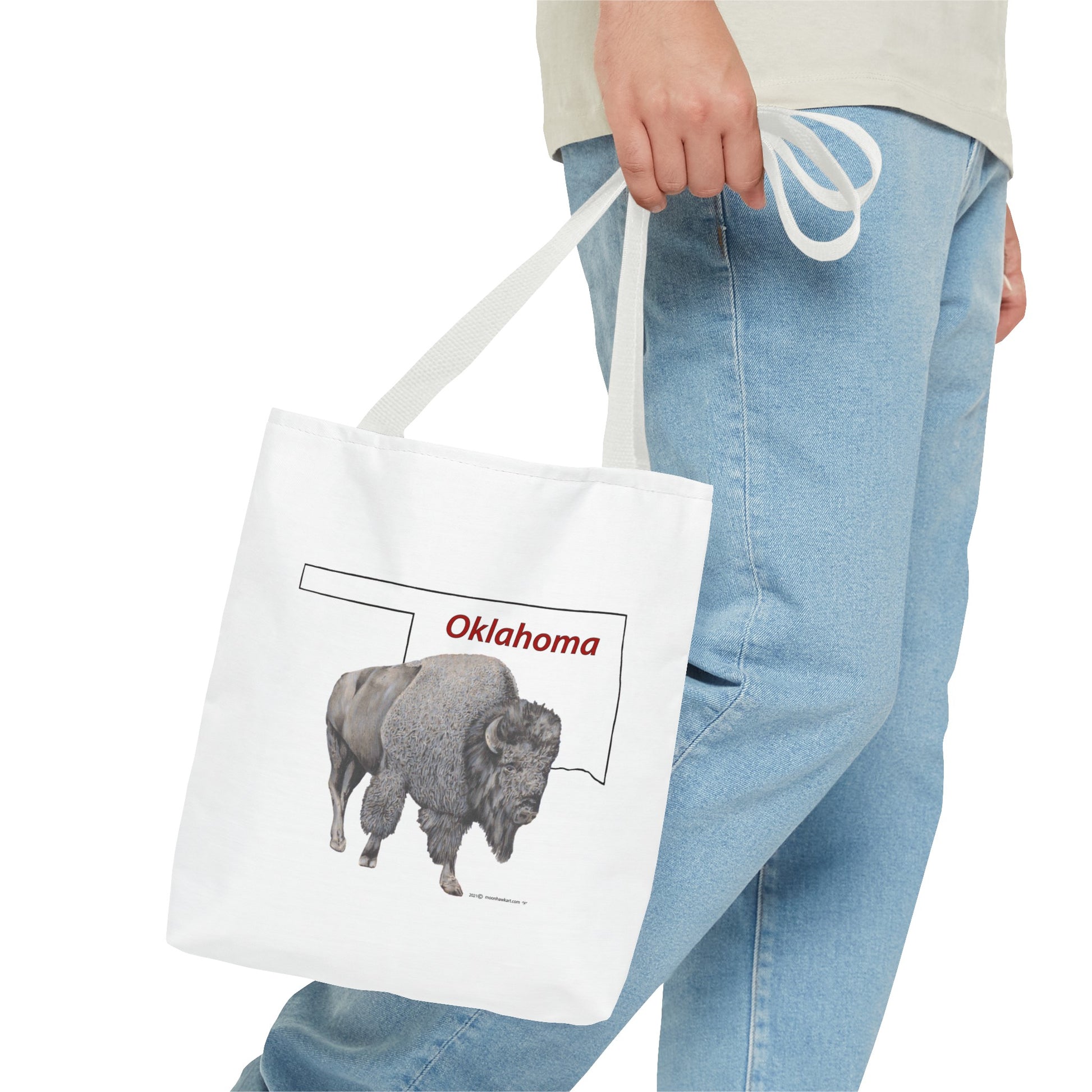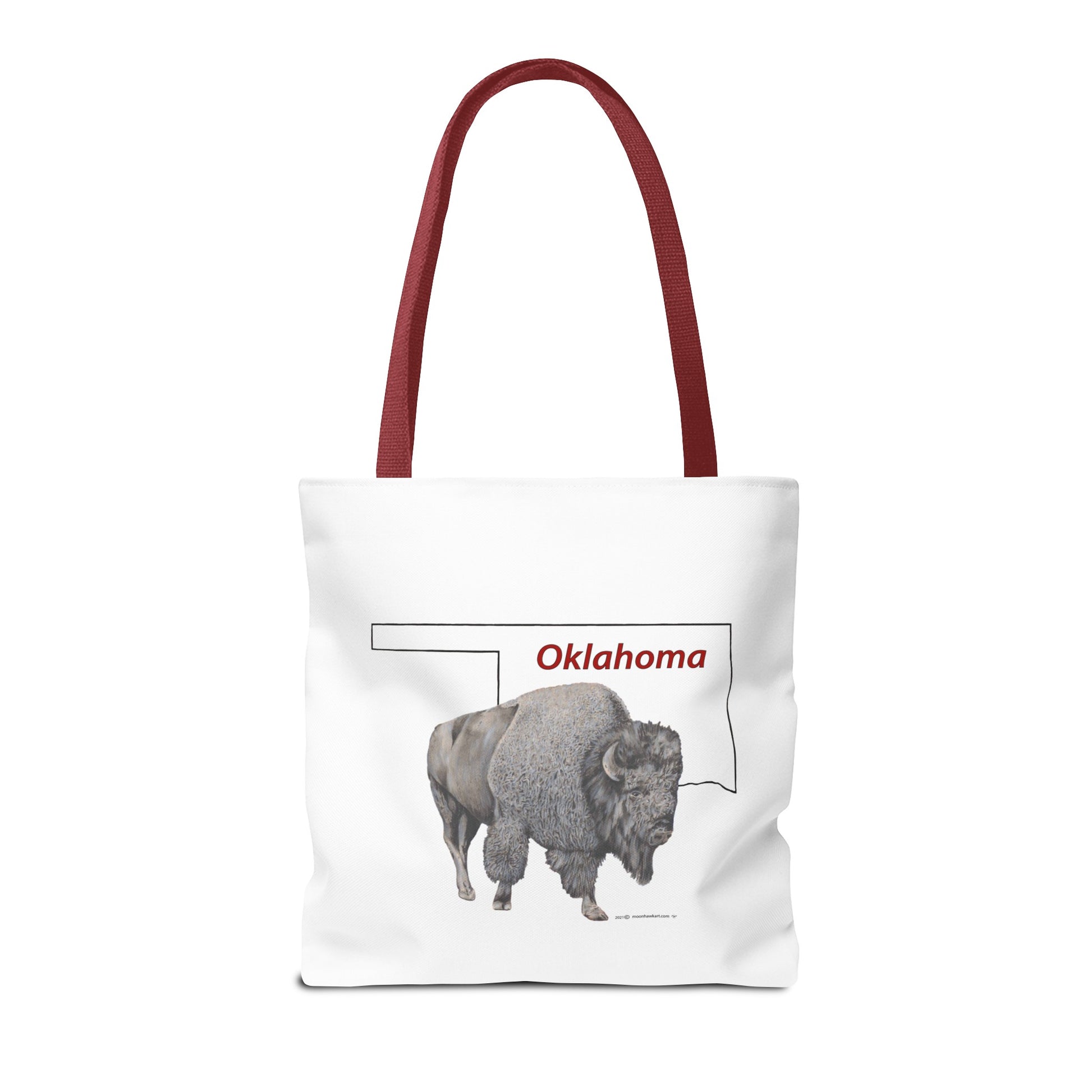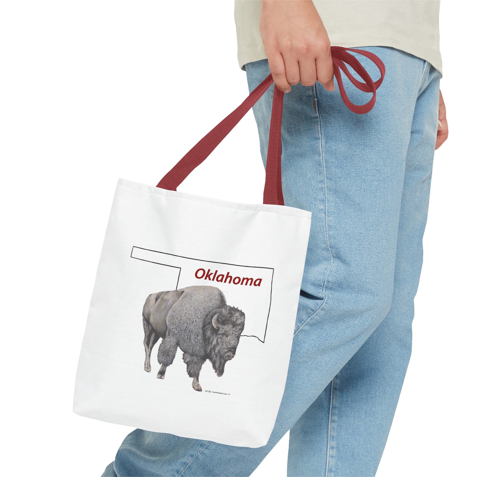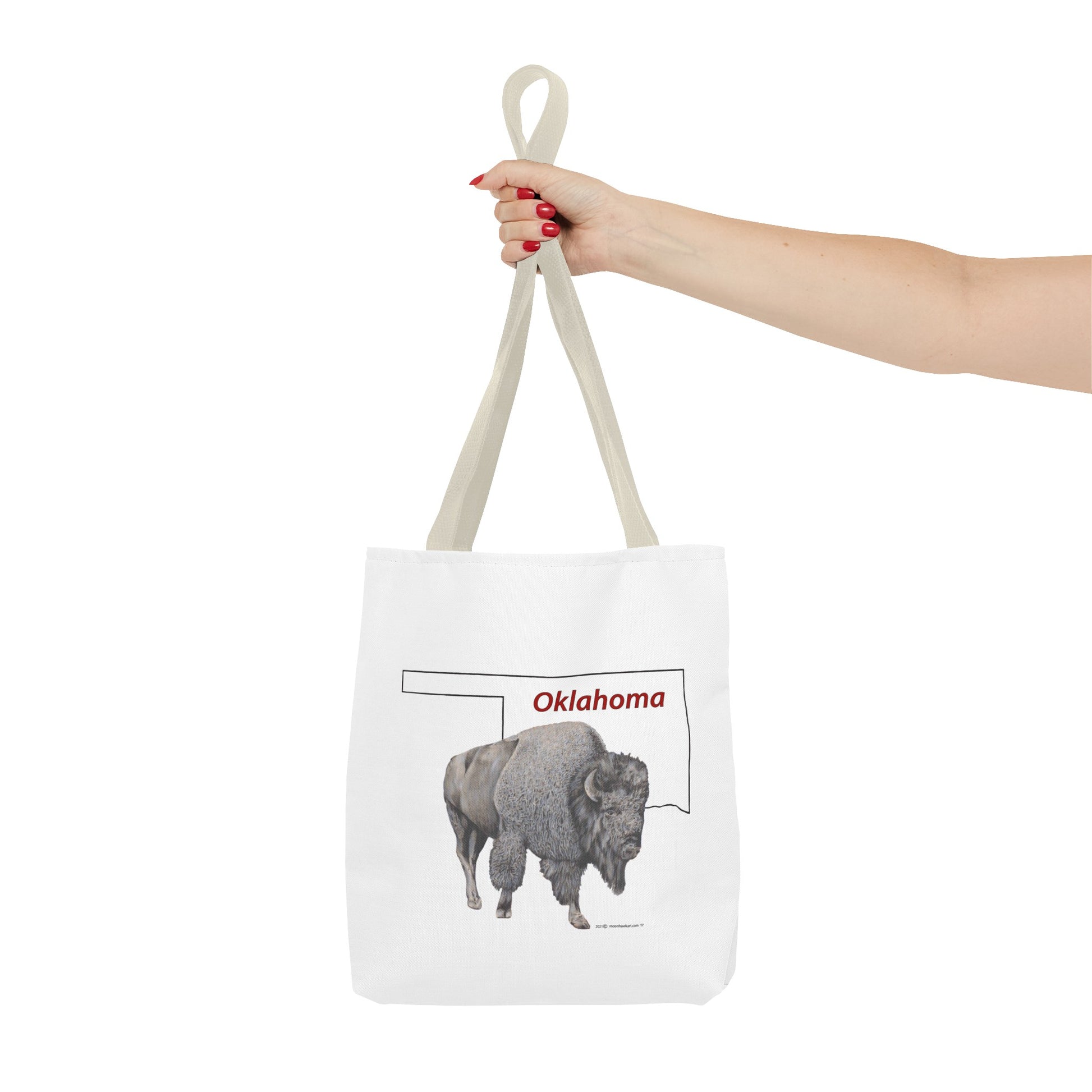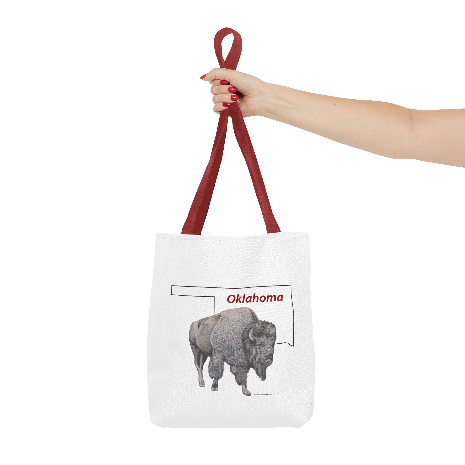 Available in 3 sizes to add both functionality and style, these Oklahoma Bison tote bags come with multiple handle colors to match. Made with spun polyester, these bags feature double-stitched seams, cotton webbing straps, and nonwoven laminate lining for high-end durability. Created with dye sublimation for high-end visuals.