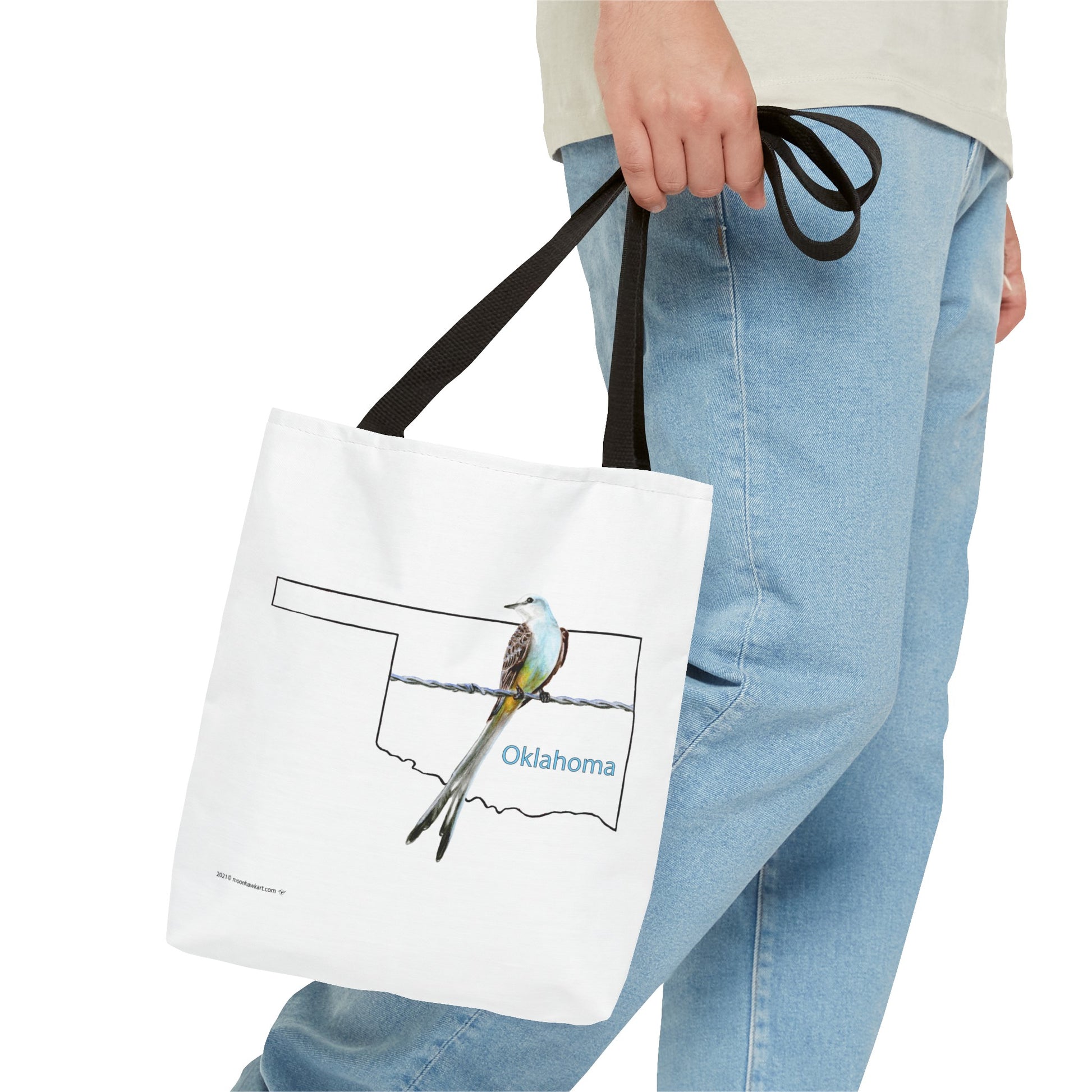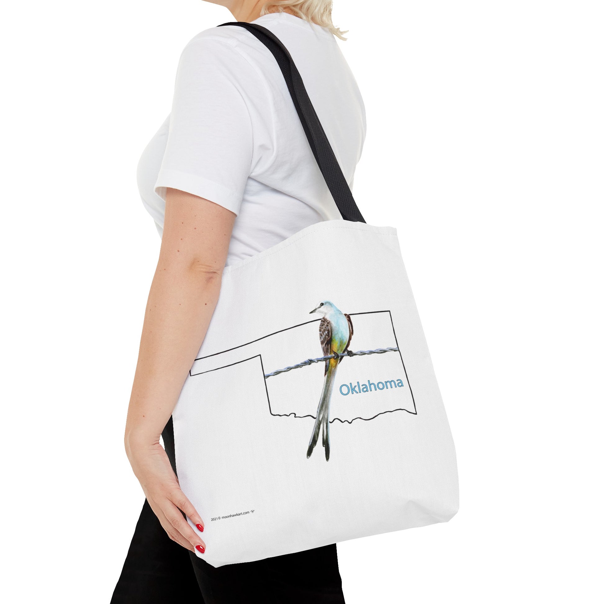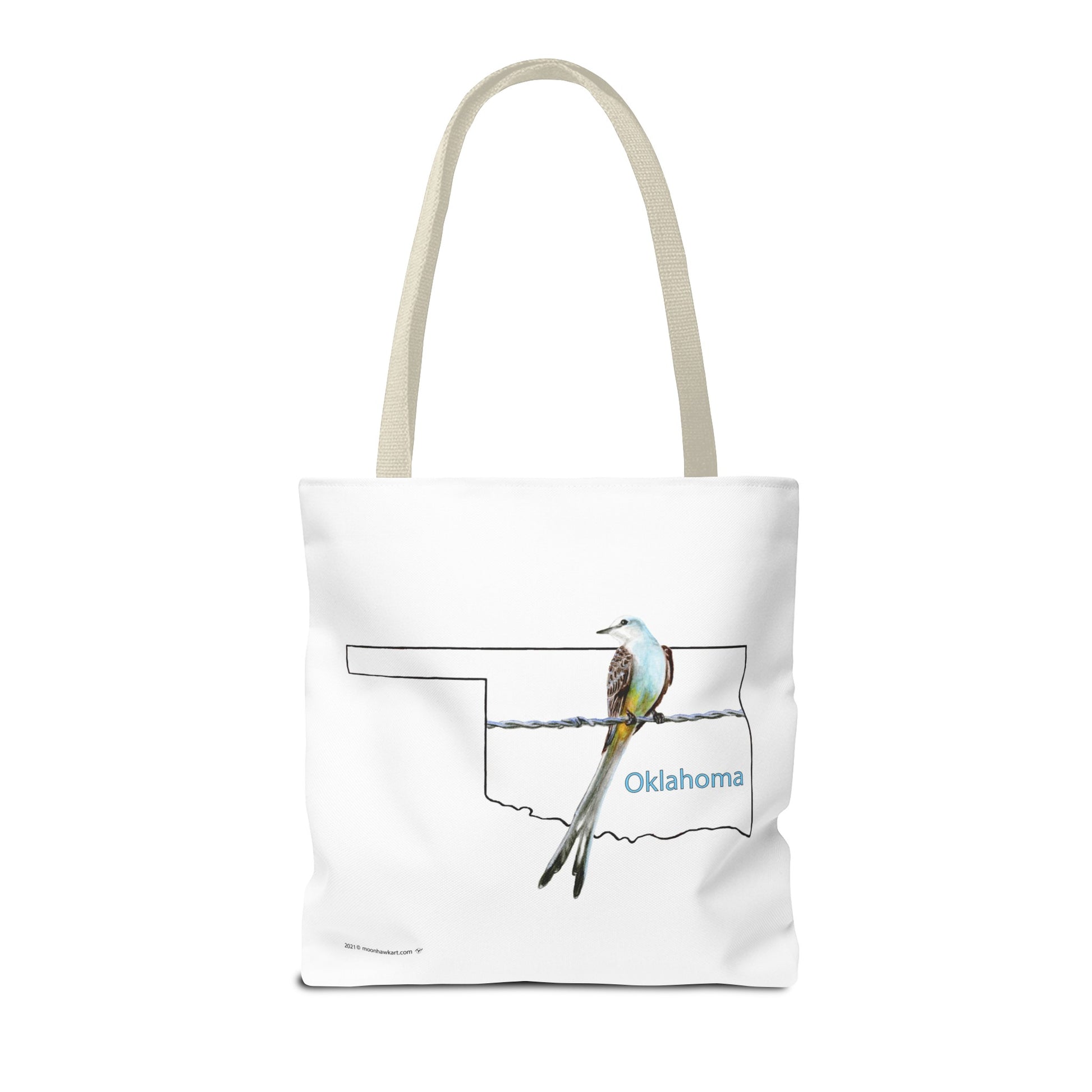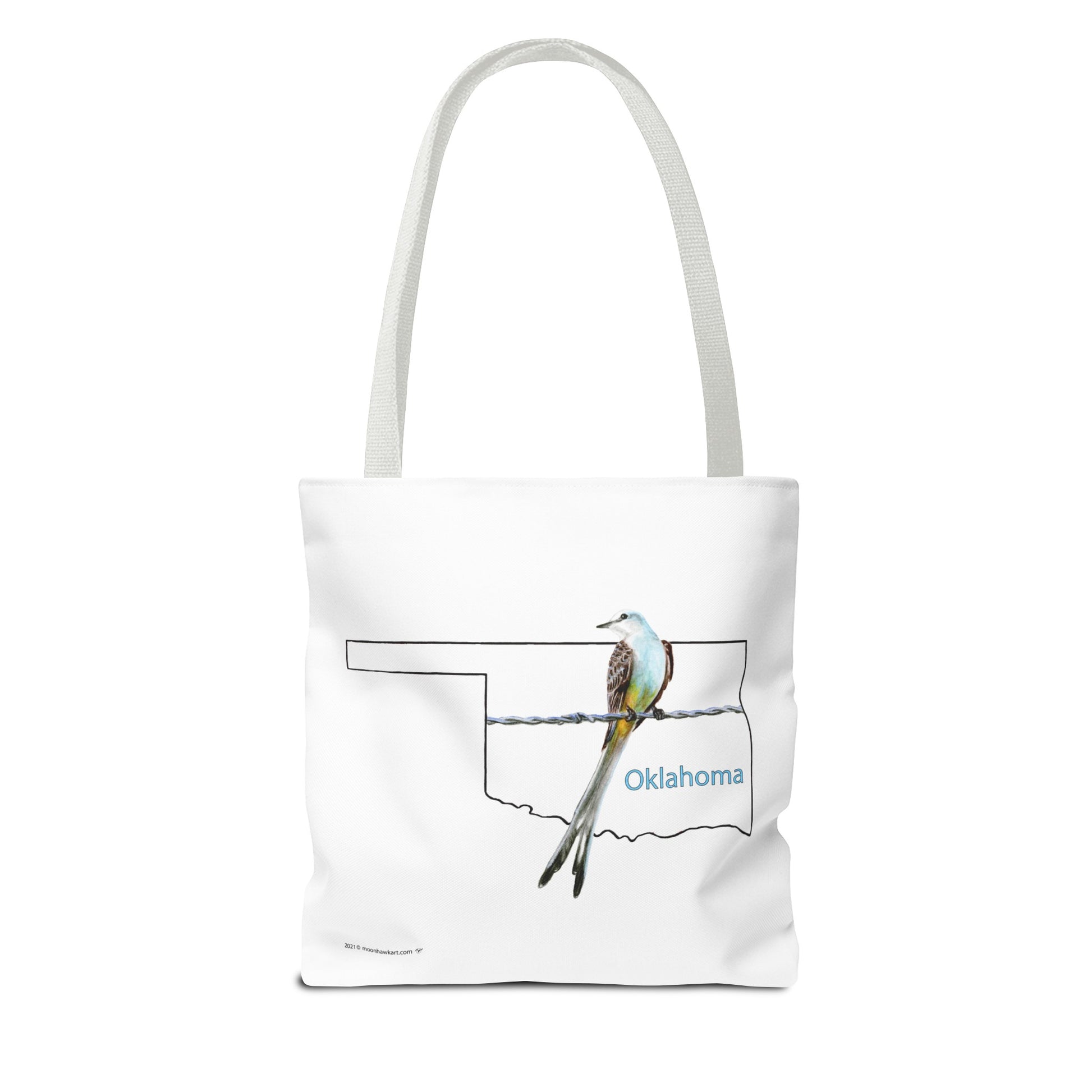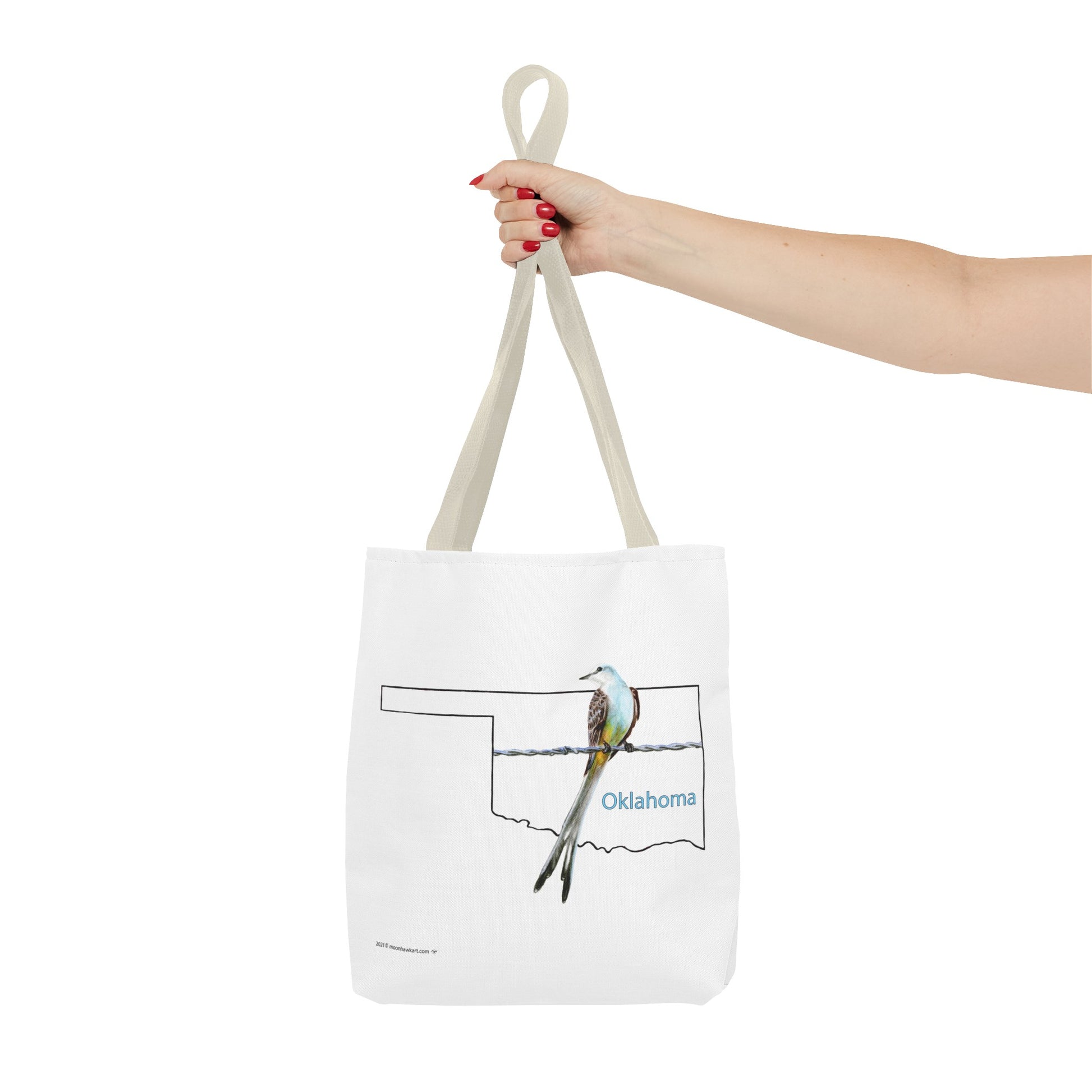 Available in 3 sizes to add both functionality and style, these Oklahoma Scissortail tote bags come with multiple handle colors to match. Made with spun polyester, these bags feature double-stitched seams, cotton webbing straps, and nonwoven laminate lining for high-end durability. Created with dye sublimation for high-end visuals.