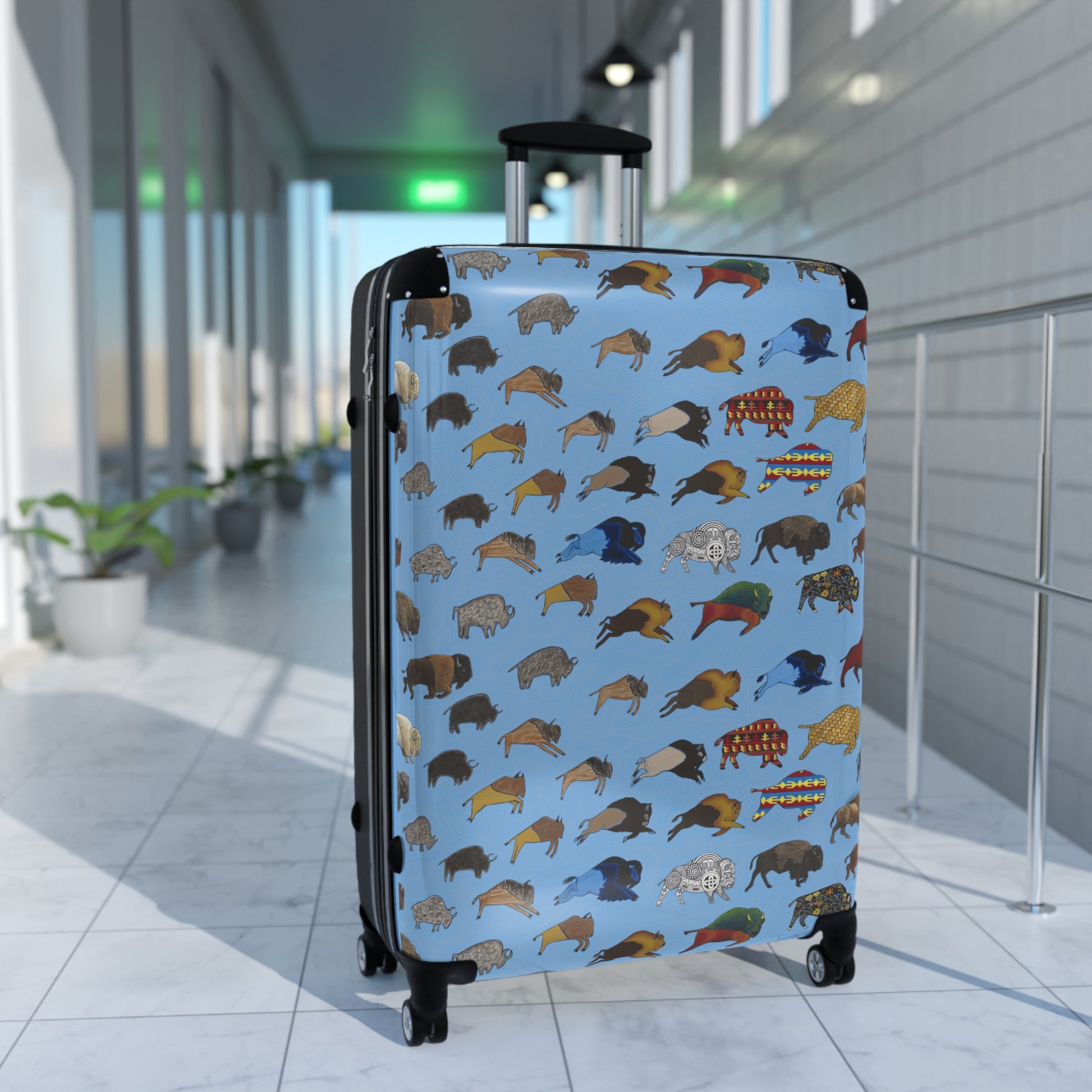 Suitcase, Light Blue, Bison Transition, Buffalo, Native American, Luggage, Carry On