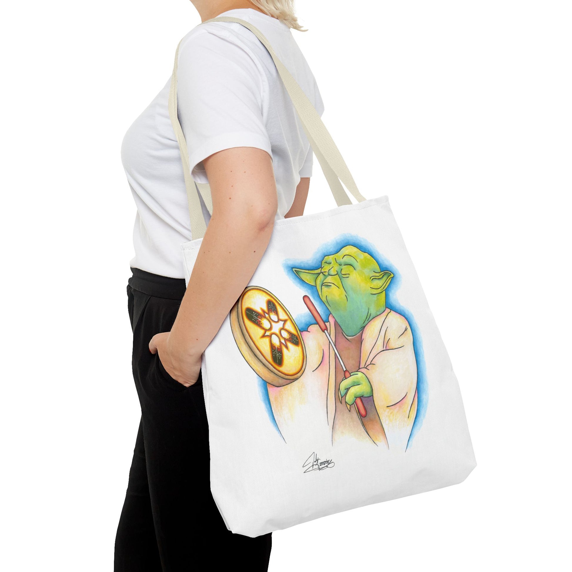 Tote Bag, Alien Playing Native Hand Drum, Native Pop Humor, Native American