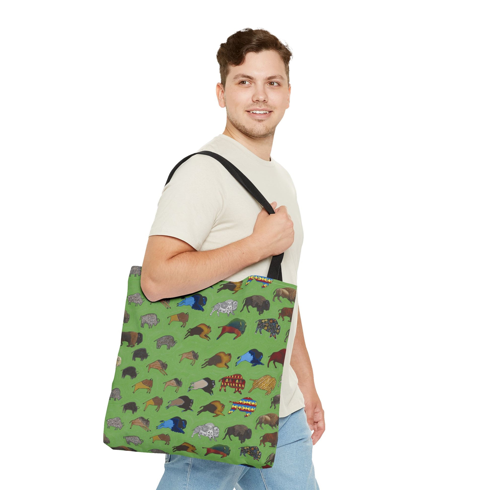 Tote Bag, Green, Bison Transition, Buffalo, Native American