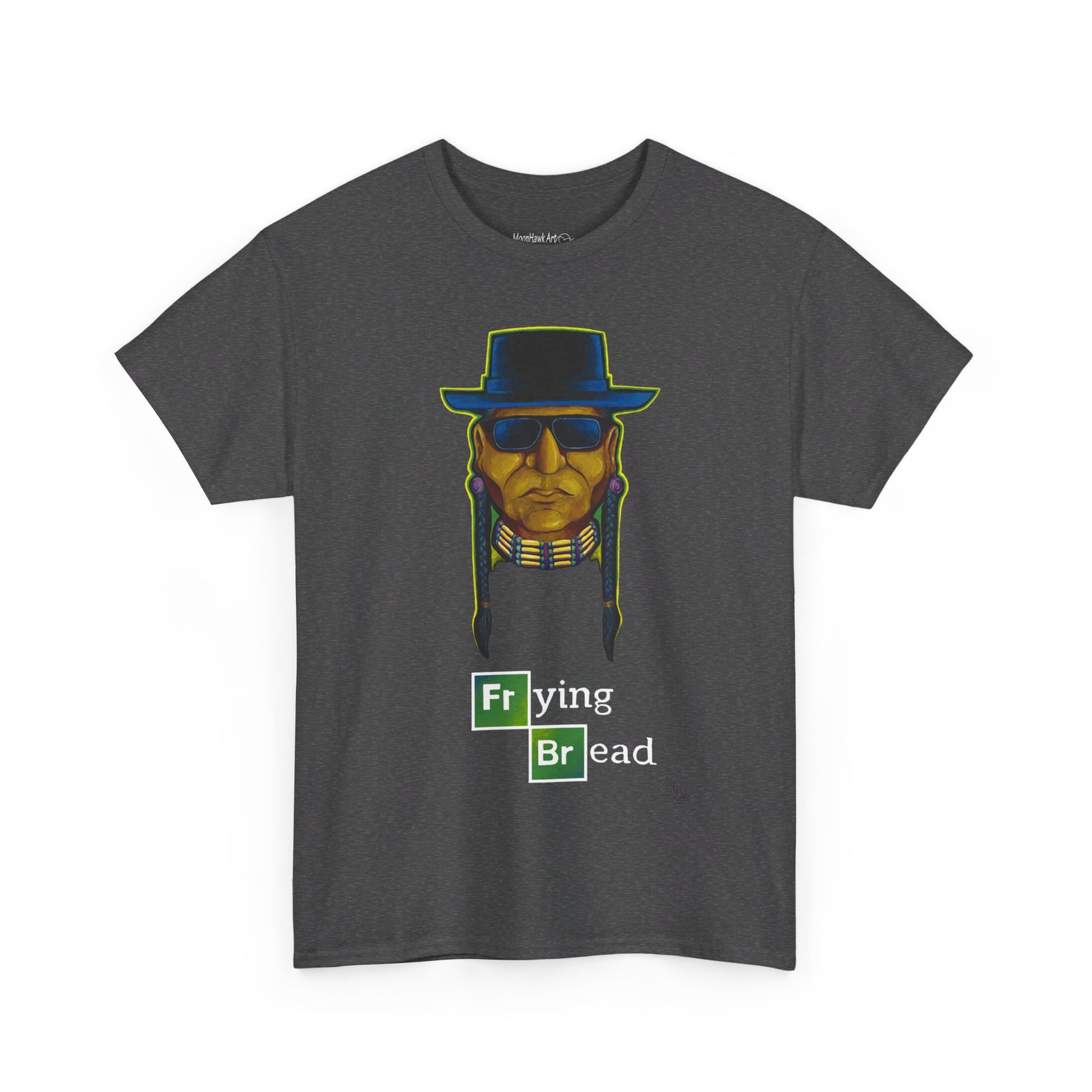 Unisex Heavy Cotton Tee, Walter Red, Frying Bread, Native Humor, Indigenous Pop Art