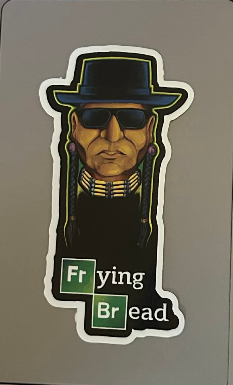 The "Frying Bread, Walter Red" image was created as a Native humor piece. It is a parady of the Walter White character from the tv series, Breaking Bad.