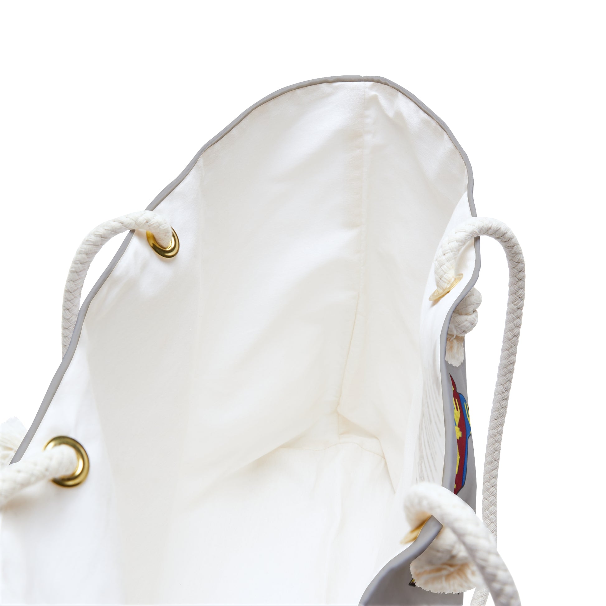 Our oversized Weekender Tote is perfect for your weekend at the beach or PowWow. The wide-mouthed, durable bag holds a generous amount of personal items and is easily held by its thick rope handles.