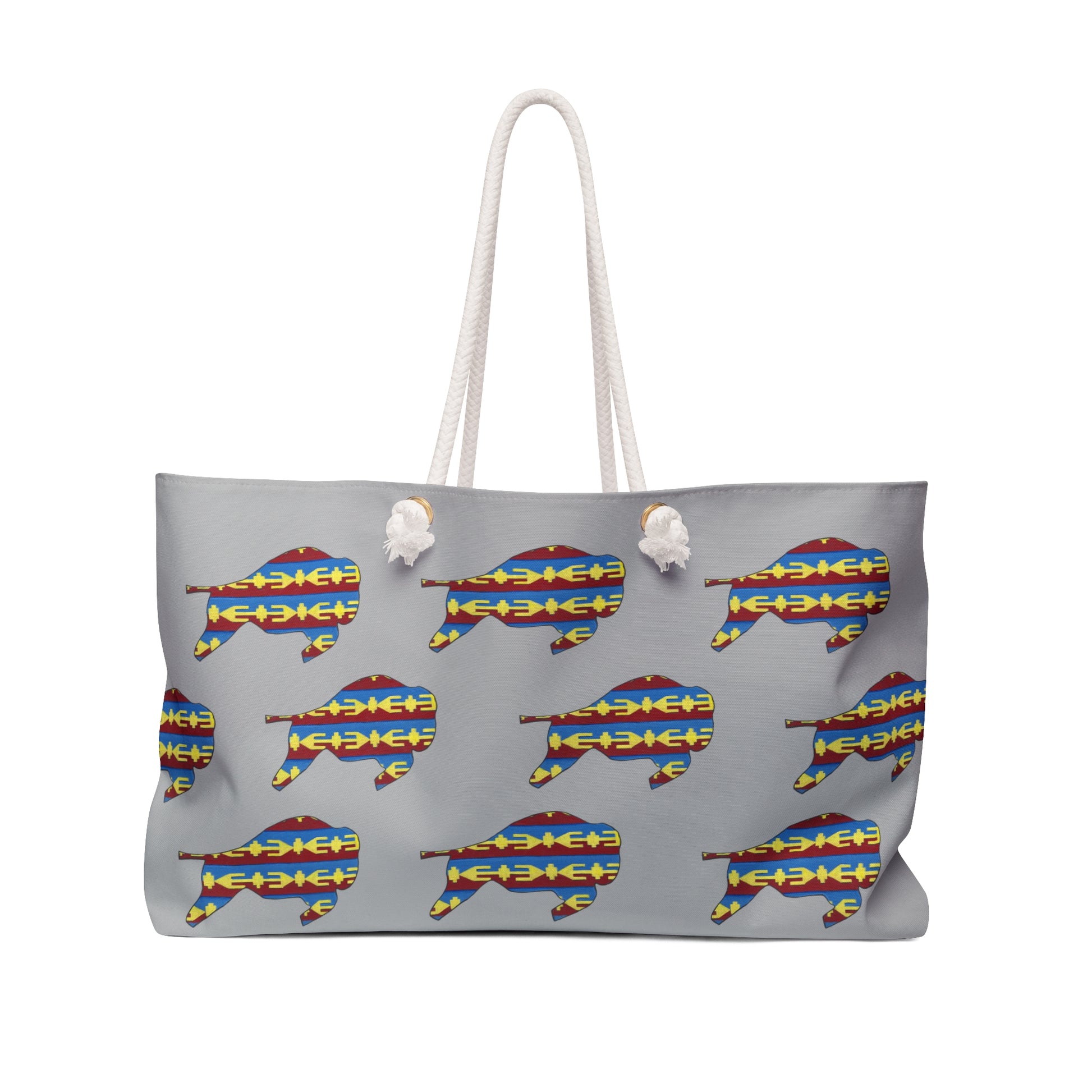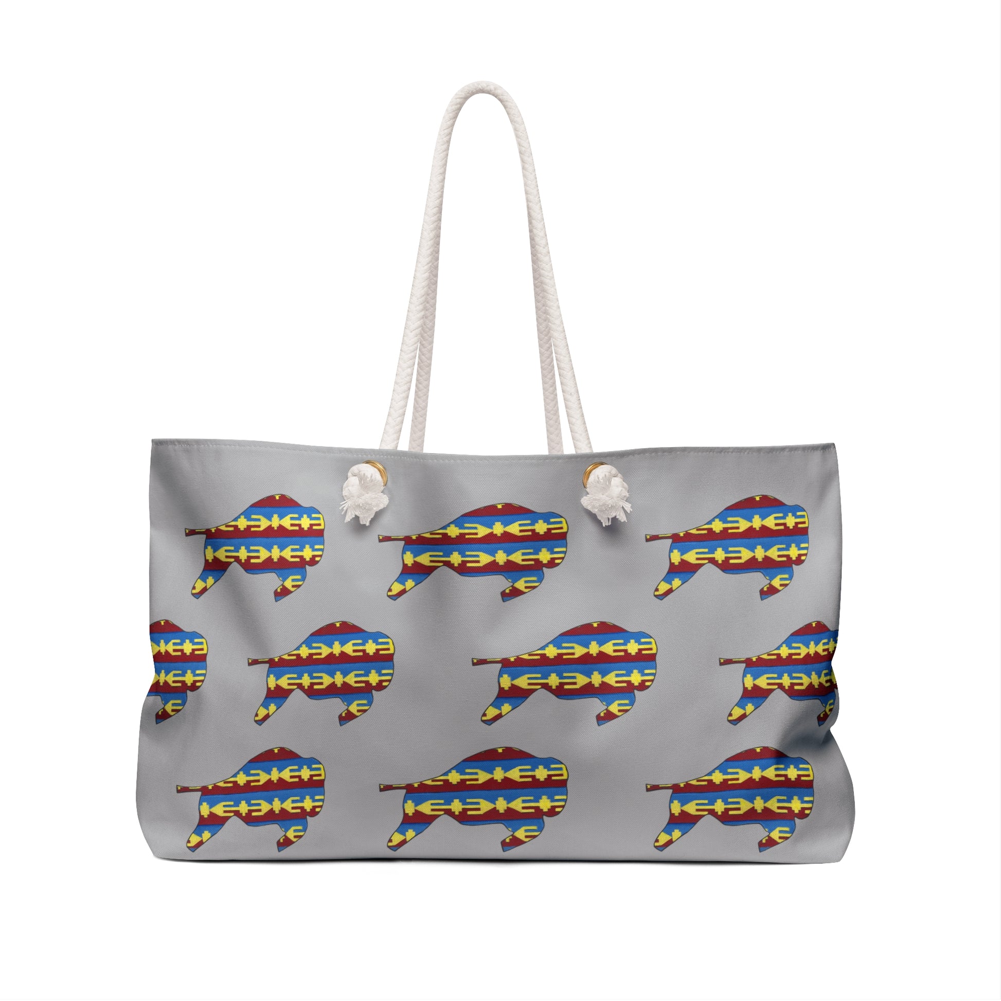 Weekender Bag, Gray, Osage Design, Bison, Buffalo, Native American, Powwow Tote