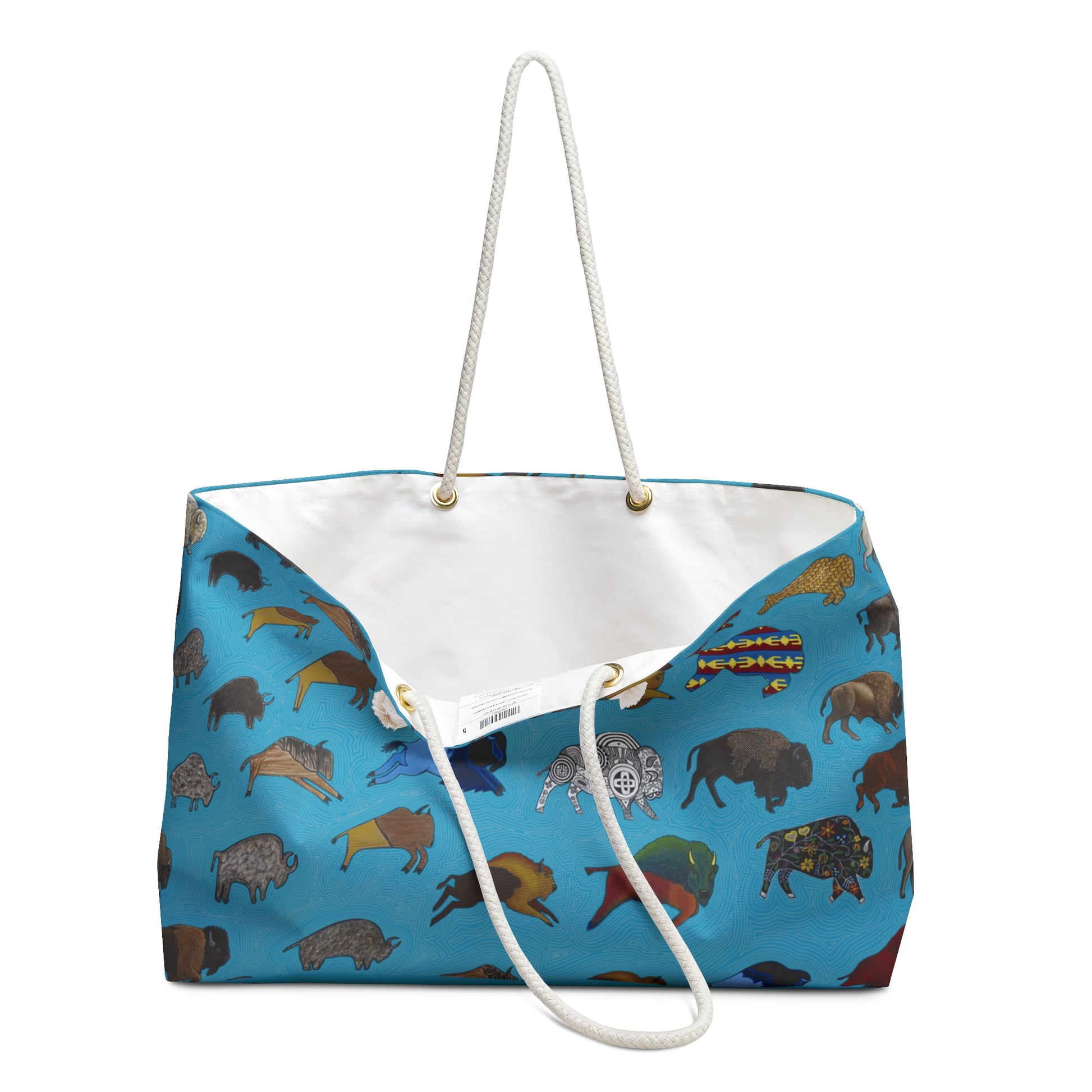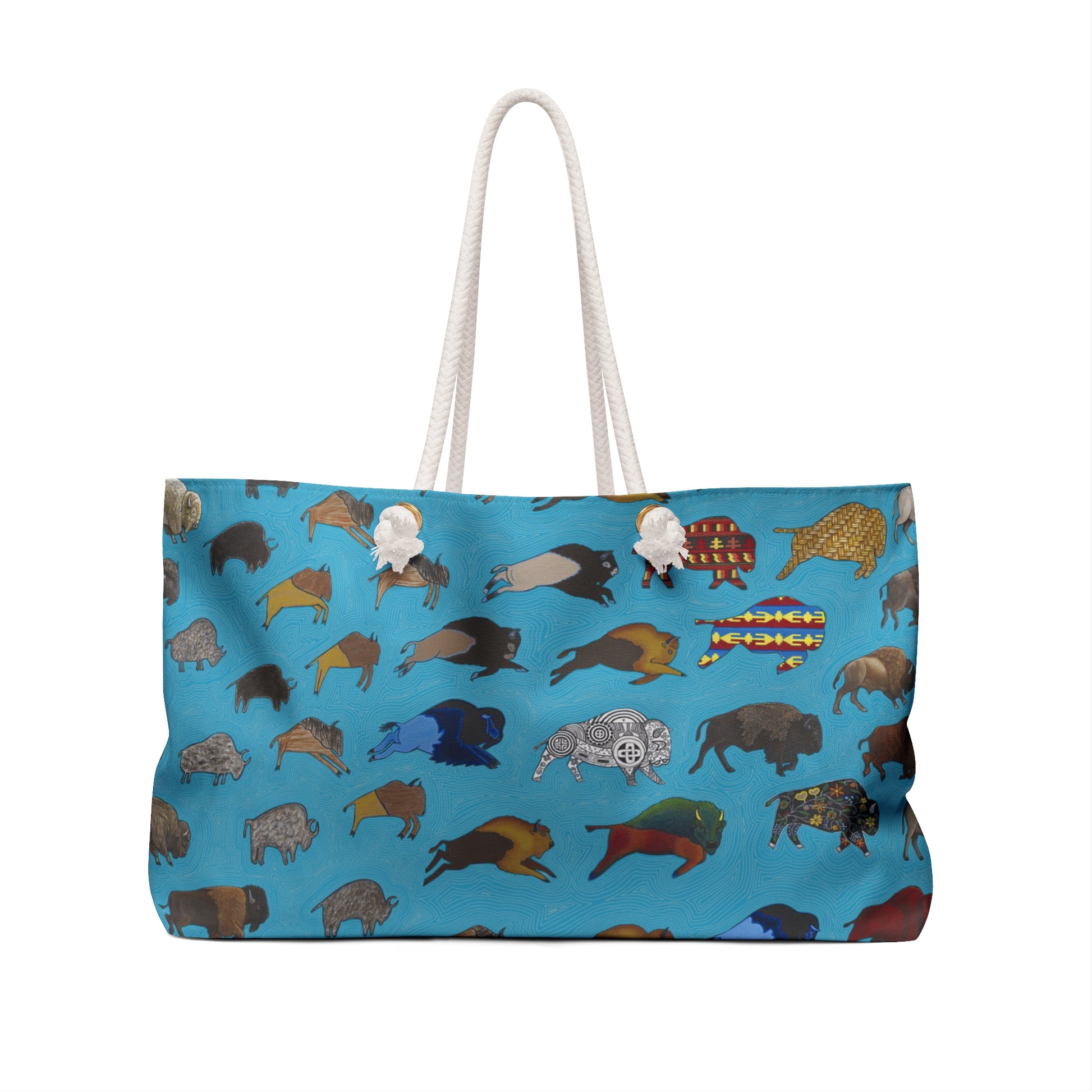 Weekender Bag, Turquoise, Bison Transition, Buffalo, Native American, PowWow Tote