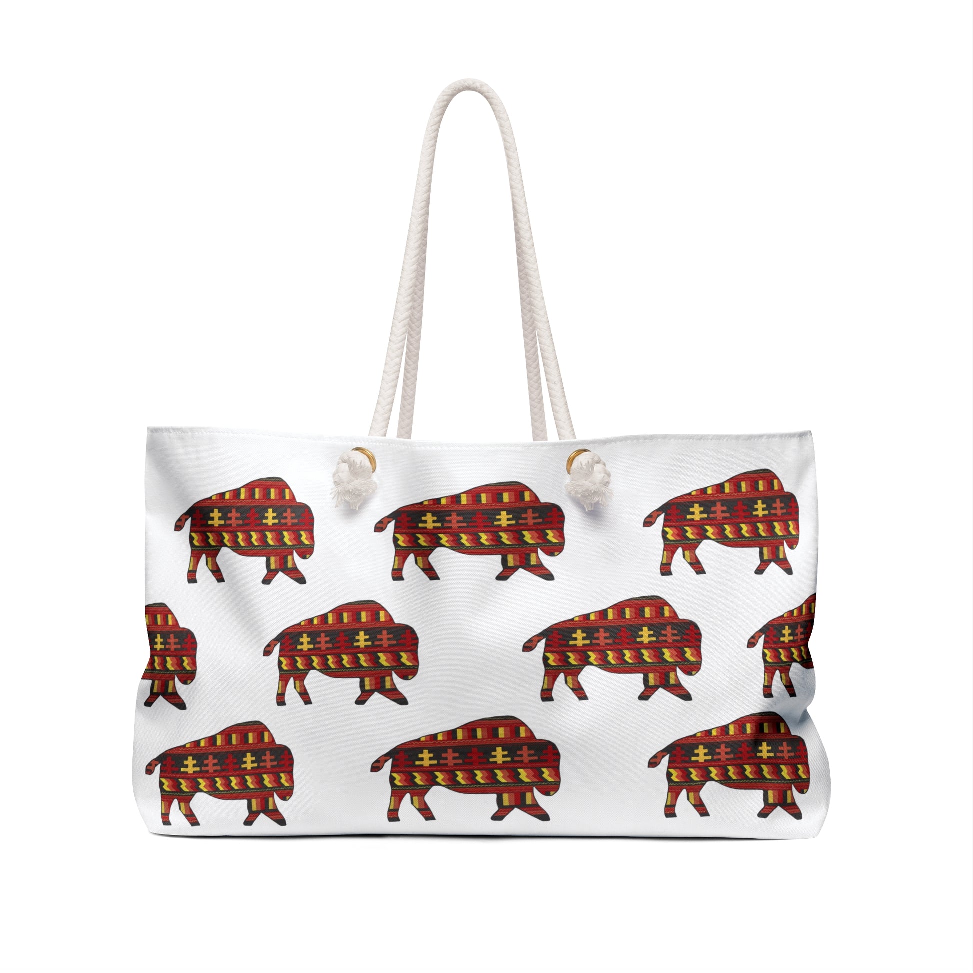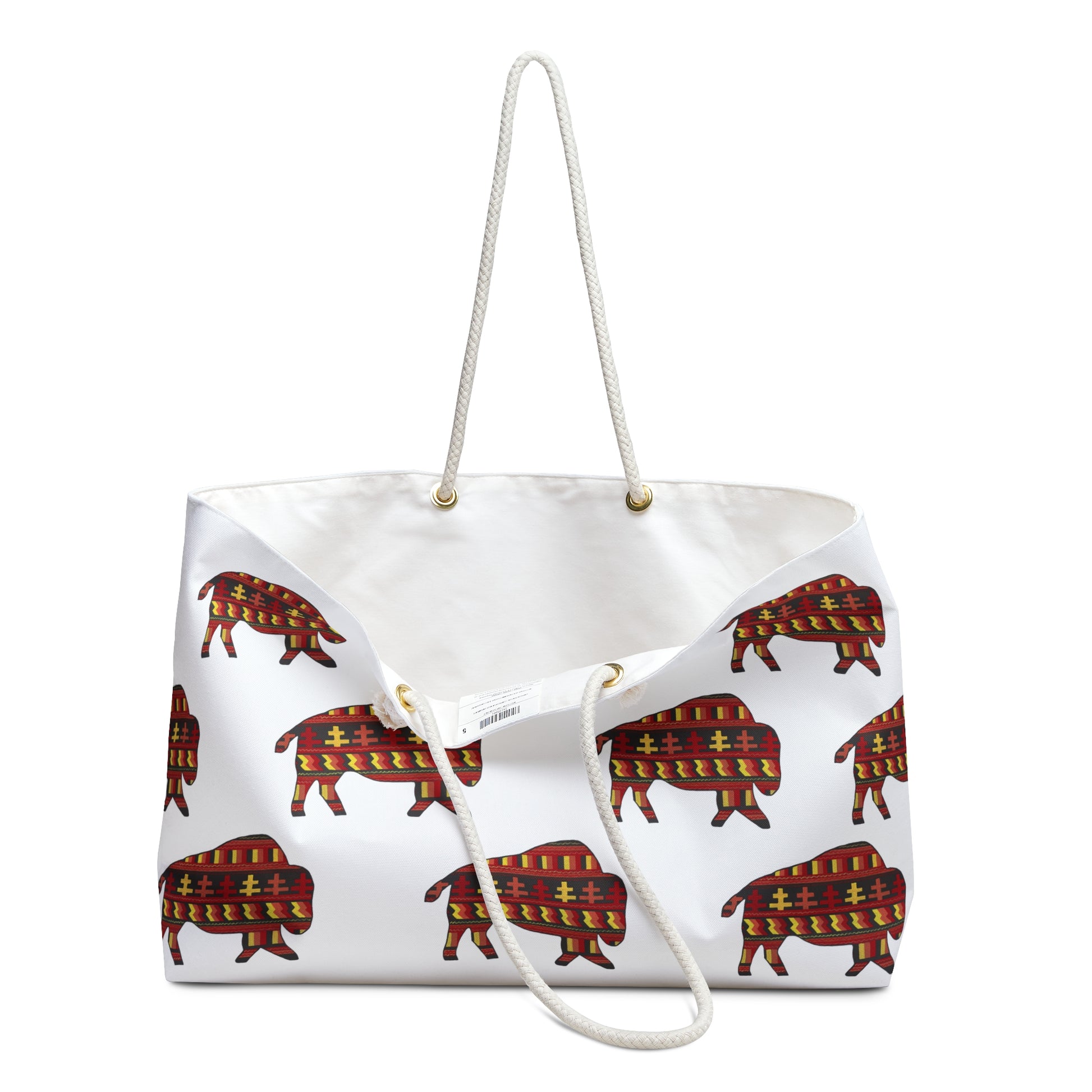 Weekender Bag, White, Seminole Design, Bison, Native American, PowWow