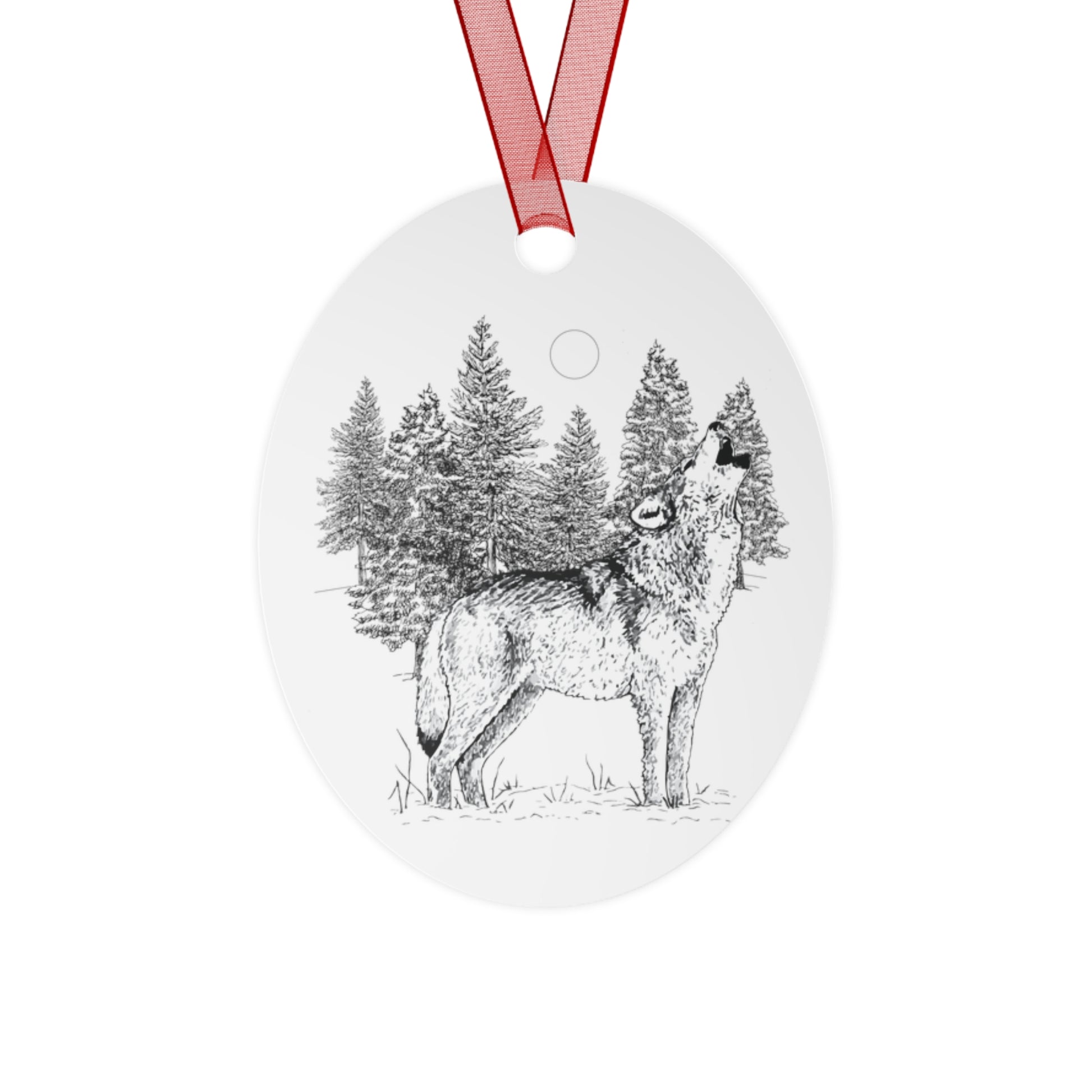 Wolf Howling Metal Ornament - Nature-Inspired Holiday Decor - Print on Both Sides - Native